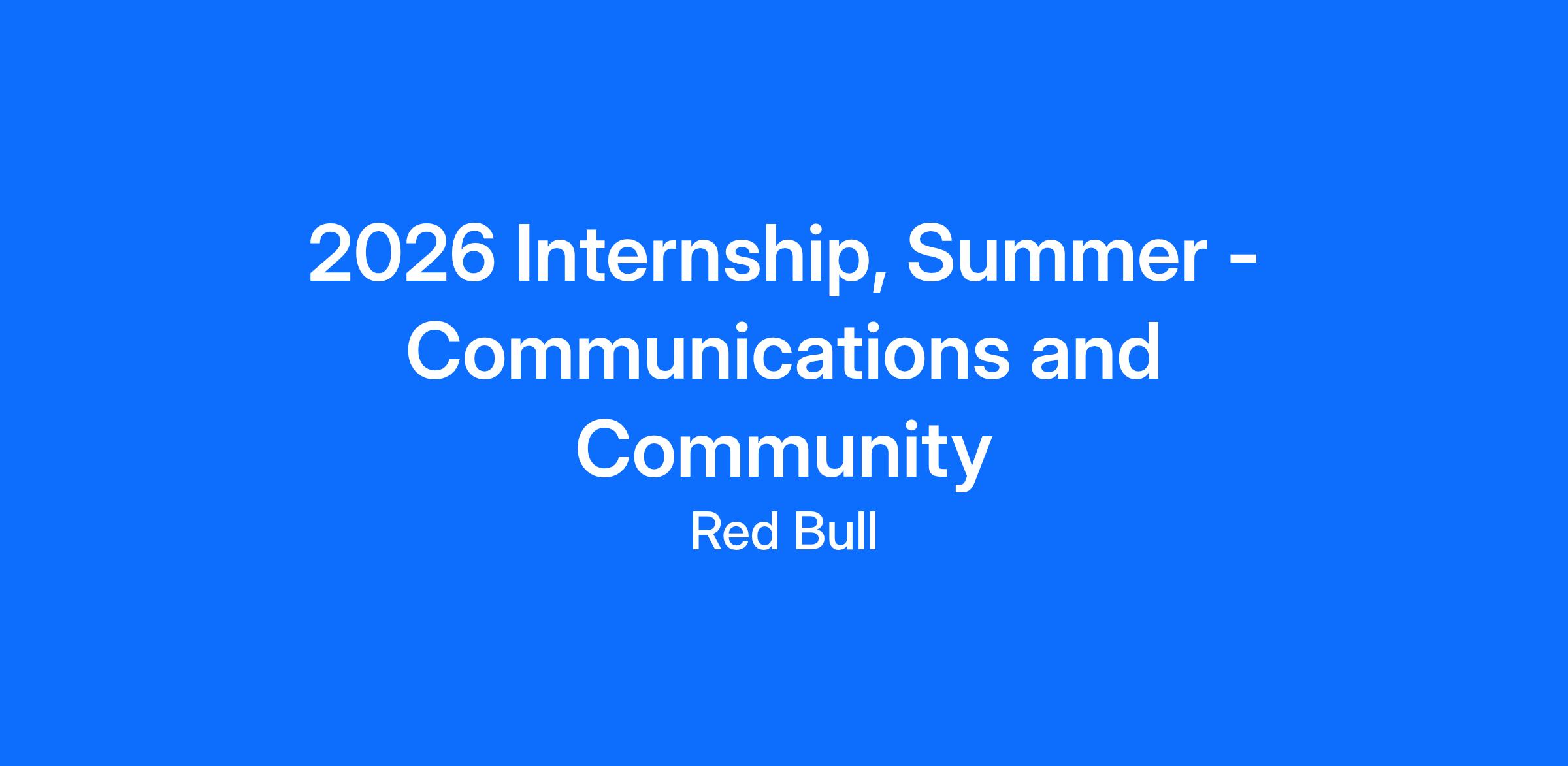 2026 Internship, Summer - Communications and Community