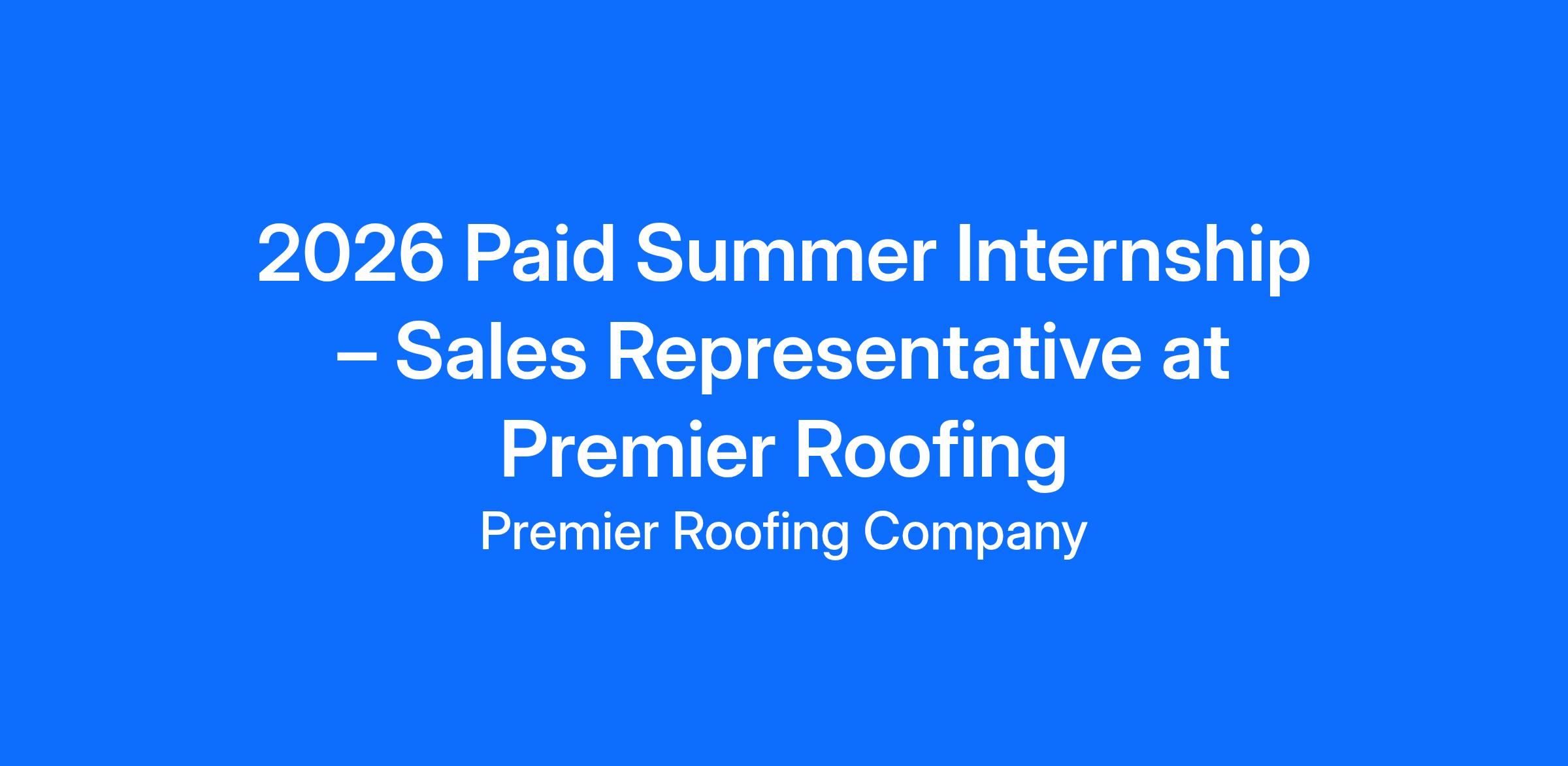 2026 Paid Summer Internship – Sales Representative at Premier Roofing