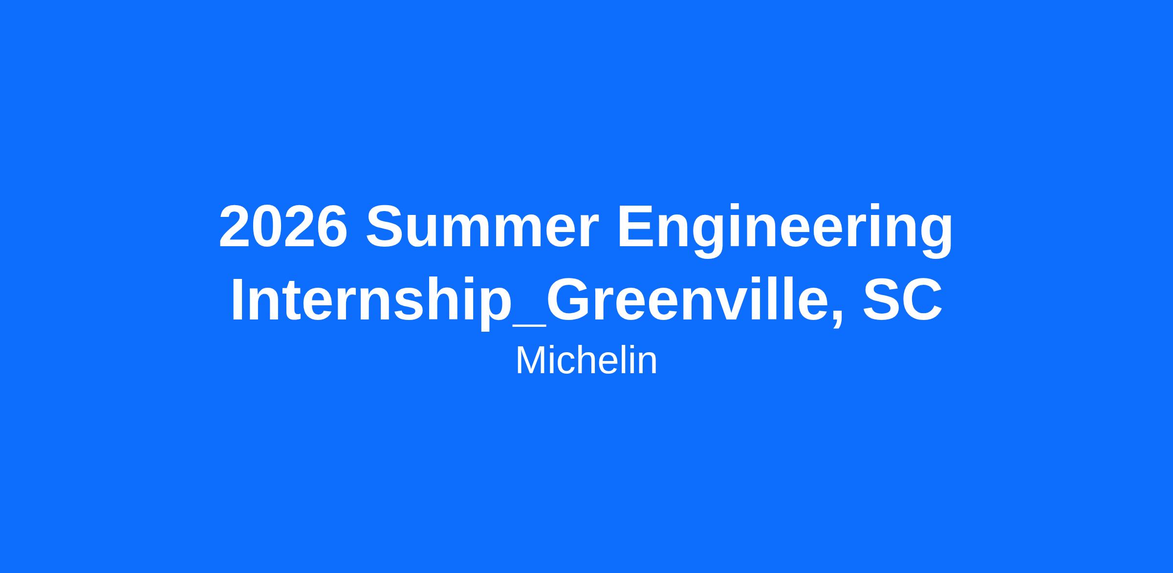 Michelin has Summer 2026 openings for an Engineering Internships. This opportunity is located in Greenville, SC. Students will be responsible for working on a project team to analyze data, improve production and quality performance. Michelin’s purpose is to support everyone’s right to move freely to find their better way forward. If respect for people, teamwork and trust are some values you live by you should consider joining us, the Worldwide leader in Tires!