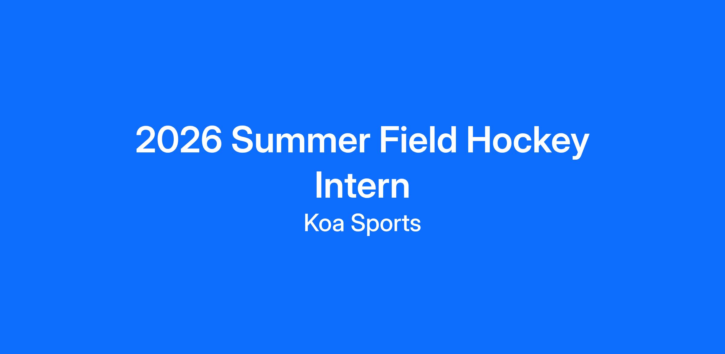 Field Hockey Intern duties and responsibilities: ● Coach at field hockey summer camp 3-5 days a week ● Be able to execute drills and teach basics of field hockey ● Think on your feet ● In office, administrative work 1-2 days per week ● Creating posts for social media ● Embody Koa's 4 Core Values: Positive, Fun, Dedicated, Team First ● Be an all-star communicator. ● Be responsible and take pride in shaping children's lives. ● Must have reliable transportation and a cell phone.