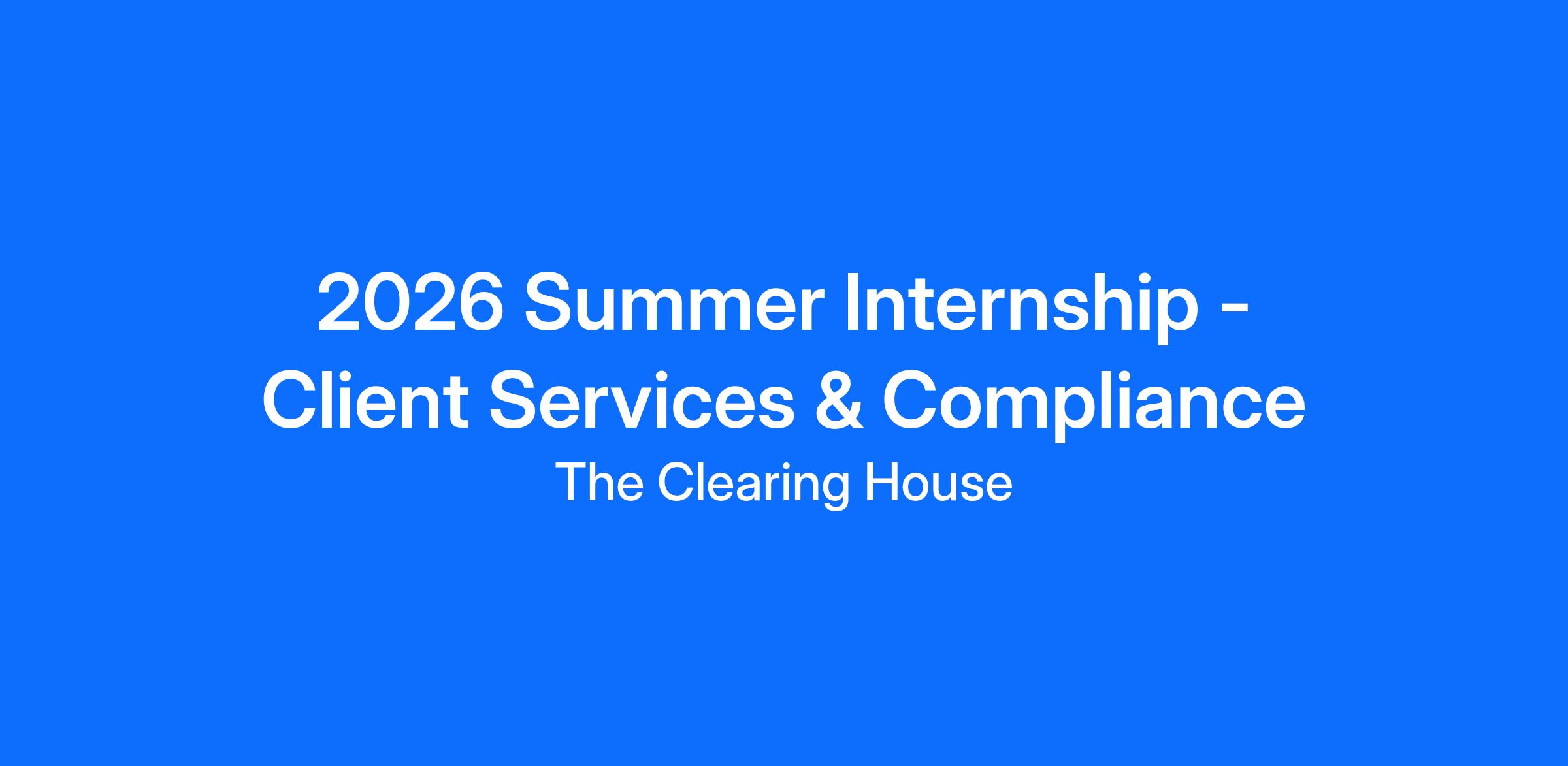About TCH Client Services & Compliance Summer Internship Program: TCH Client Services & Compliance Summer Internship Program is a 10-week experience for rising college juniors and seniors interested in the field of Client Services & Compliance management. Interns will be in Winston-Salem, NC. Over the course of the 10-week program, interns will have the opportunity to support ECCHO and The Clearing House Payments Authority (TCHPA):