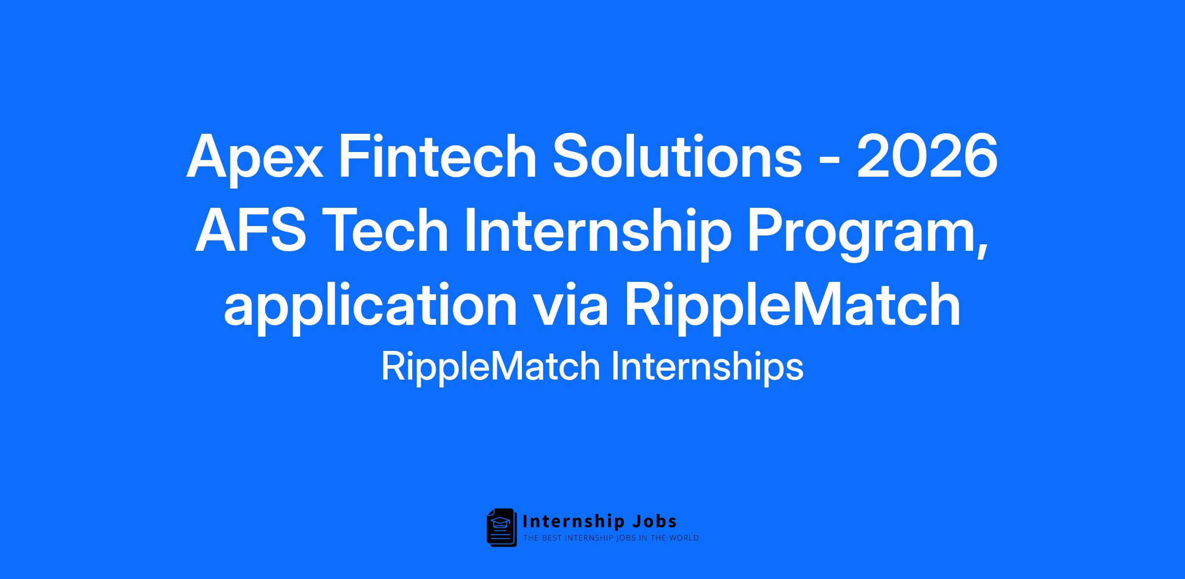This role is with Apex Fintech Solutions. Apex Fintech Solutions uses RippleMatch to find top talent.
