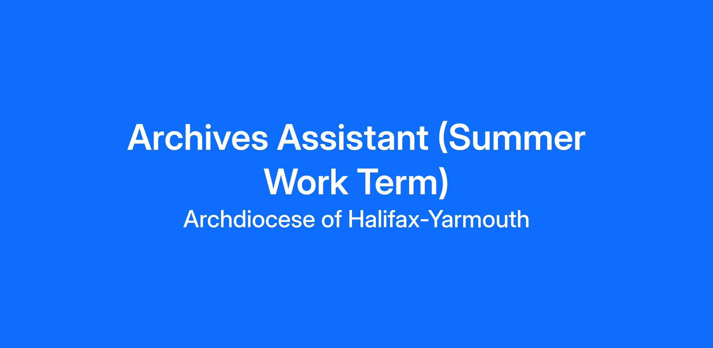 The Archives of the Archdiocese of Halifax-Yarmouth are seeking a motivated student for a stimulating summer position in the field of documentary heritage.
