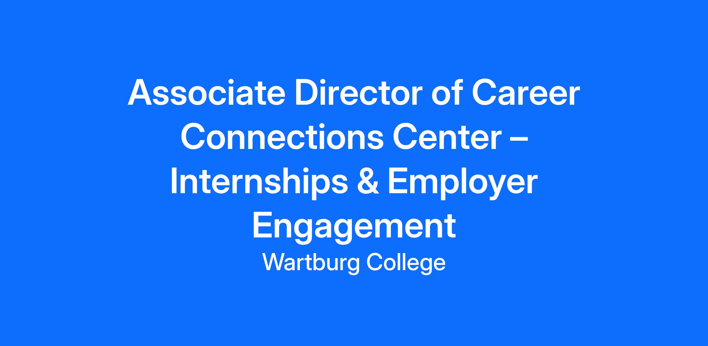The Associate Director for Internships & Employer Engagement serves as a strategic catalyst within the Career Connections Center (CCC), advancing Wartburg College’s commitment to experiential learning, career readiness, and vocational discovery. This role leads cross-campus efforts to embed internships and field experiences into the academic and co-curricular fabric of the college, while cultivating employer and alumni partnerships that drive student success and institutional innovation. The position plays a vital role in the donor-funded Alumni & Career Connections Initiative and contributes to student development through coaching, mentoring, and high-impact programming that prepares students for lives of purpose and impact.