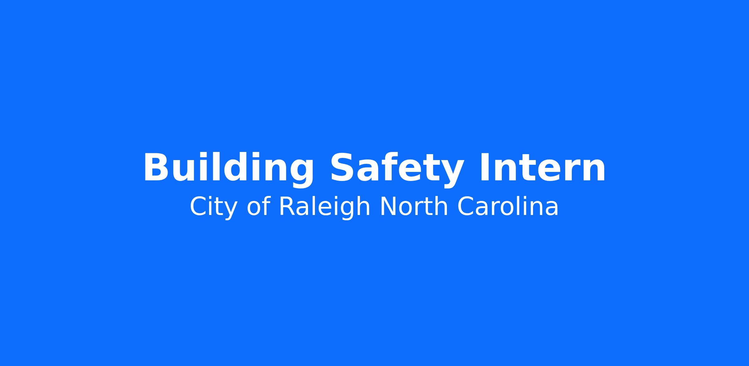 The Planning and Development Building Safety Intern works in the City of Raleigh Planning and Development Department. The Intern is a temporary hourly employee of the City of Raleigh. This is a term position without benefits.