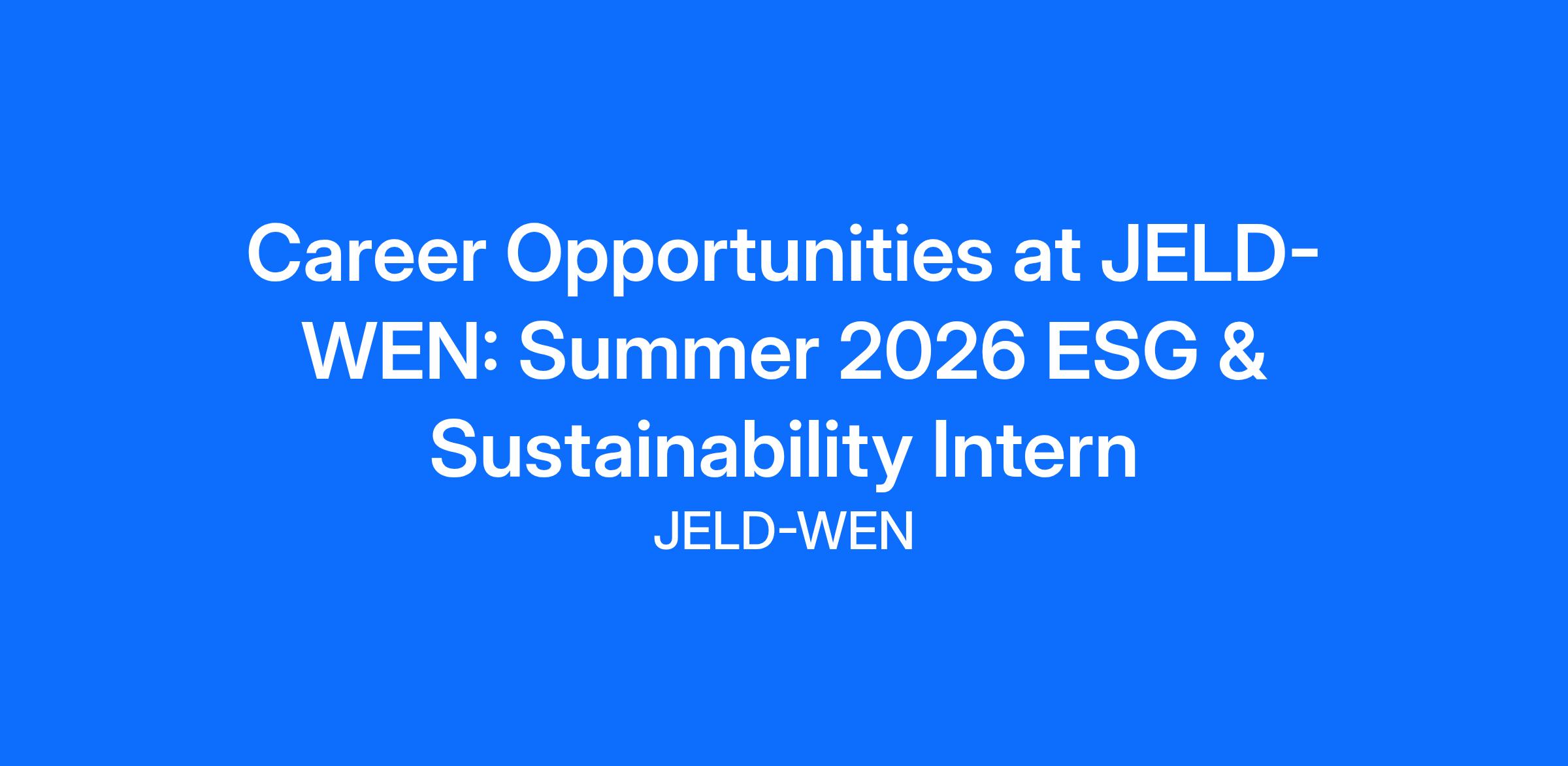 JELD-WEN is currently seeking a Summer 2026 ESG & Sustainability Intern to join our growing team.