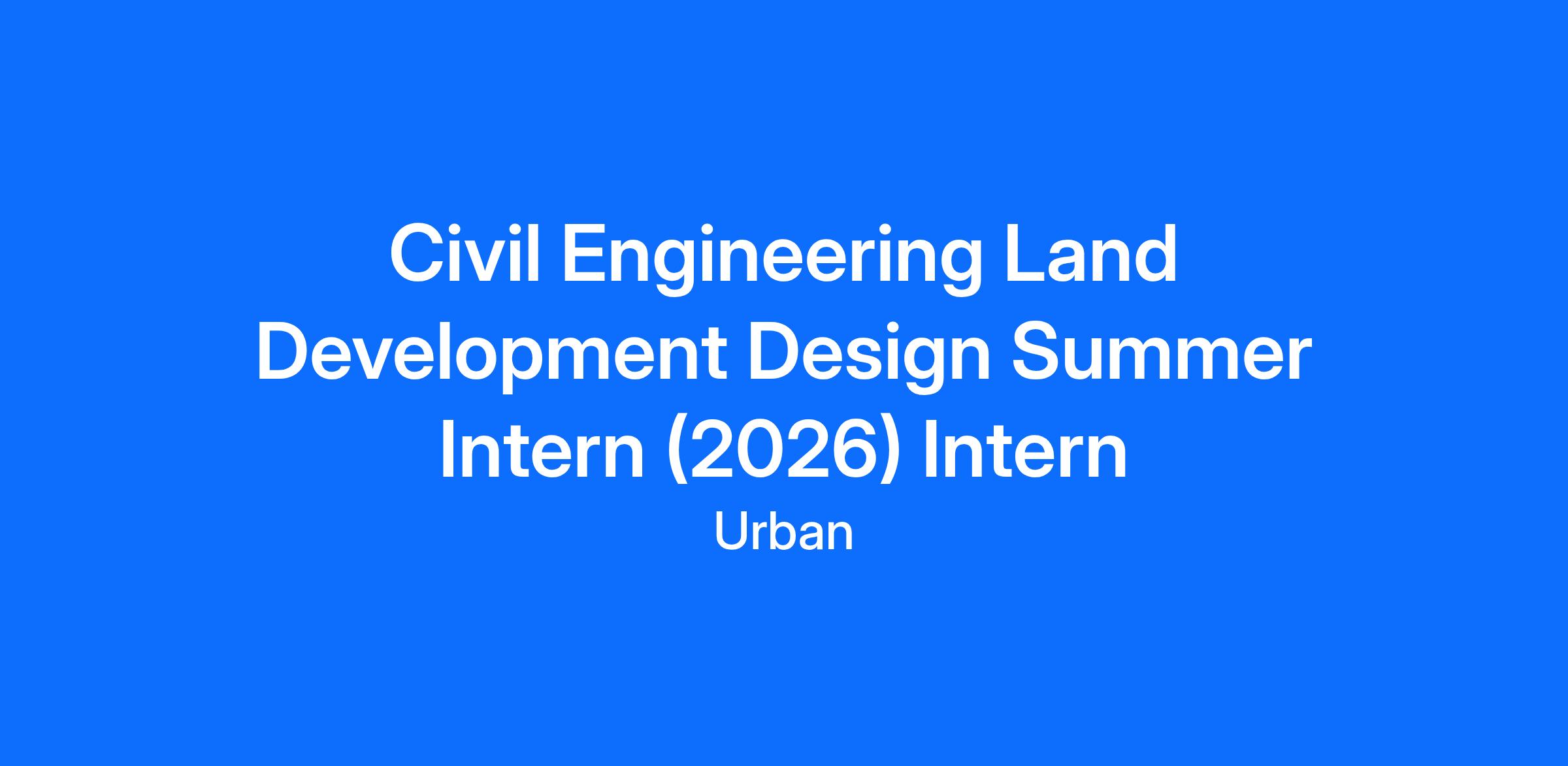 Urban, Ltd. is seeking current Civil Engineering majors for Summer 2026 paid internships in our Annandale & Chantilly, Virginia offices. Internship duration and schedule can be tailored to fit the qualified individual's needs. Â Open to all levels of college students. Â