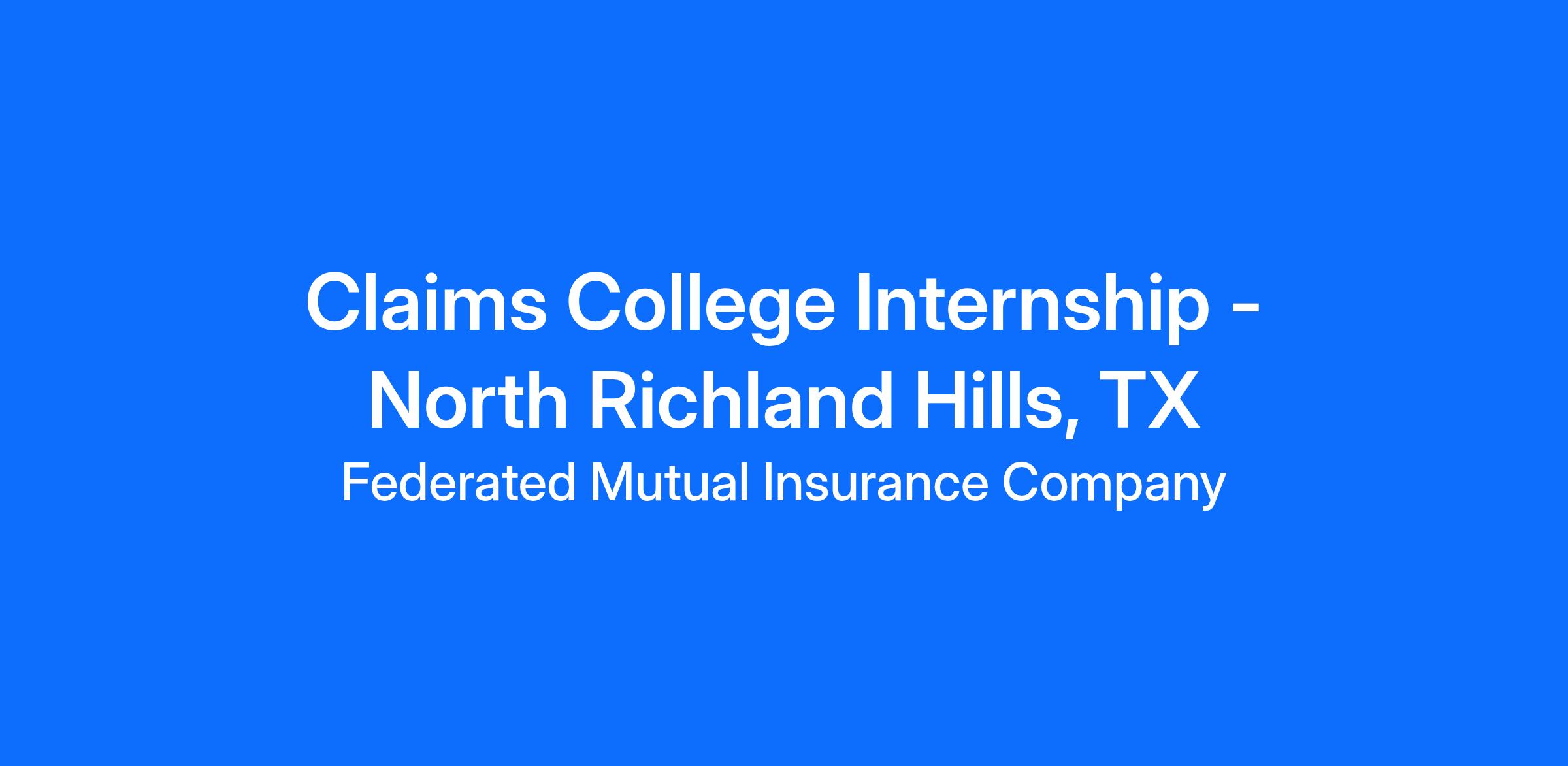 Federated Insurance is seeking a full-time claims intern in our North Richland Hills, TX office. This paid internship will last about 10 weeks in the summer of 2026 with the first 2 weeks of training in our Home Office in Owatonna, MN.Â