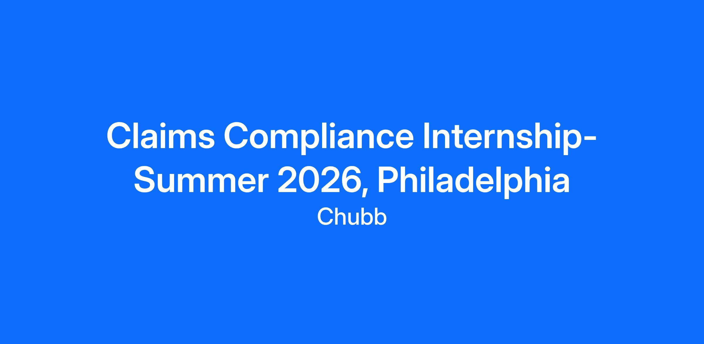 DescriptionOur Internship Program is an excellent starting point for individuals seeking to learn more about the insurance industry at one of the world's leading P&C insurance companies. As an intern within the Claims Compliance team, you will partner with the team on conducting risk assessments, auditing controls, preparing compliance reports, and maintaining accurate records. Our program offers the opportunity to learn, grow, and build professional skills while being supported by our experienced team members. Successful participants in the program may have the opportunity to return to Chubb as a full-time employee or future intern, depending on their graduation date.