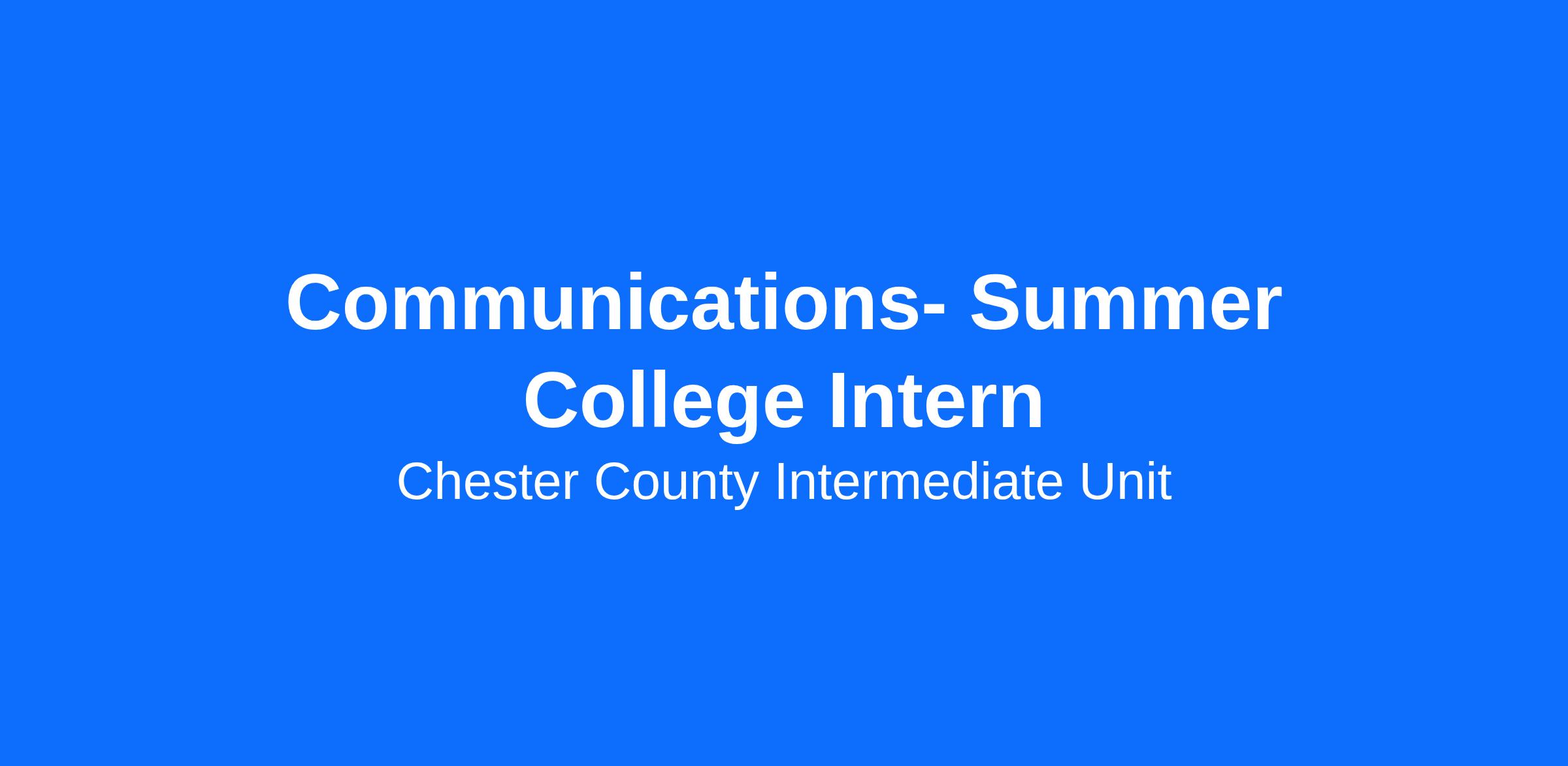 The Chester County Intermediate Unit (CCIU) has an opening for a Communications Intern within the Communications, Marketing and Community Engagment division. The position is available through the summer.