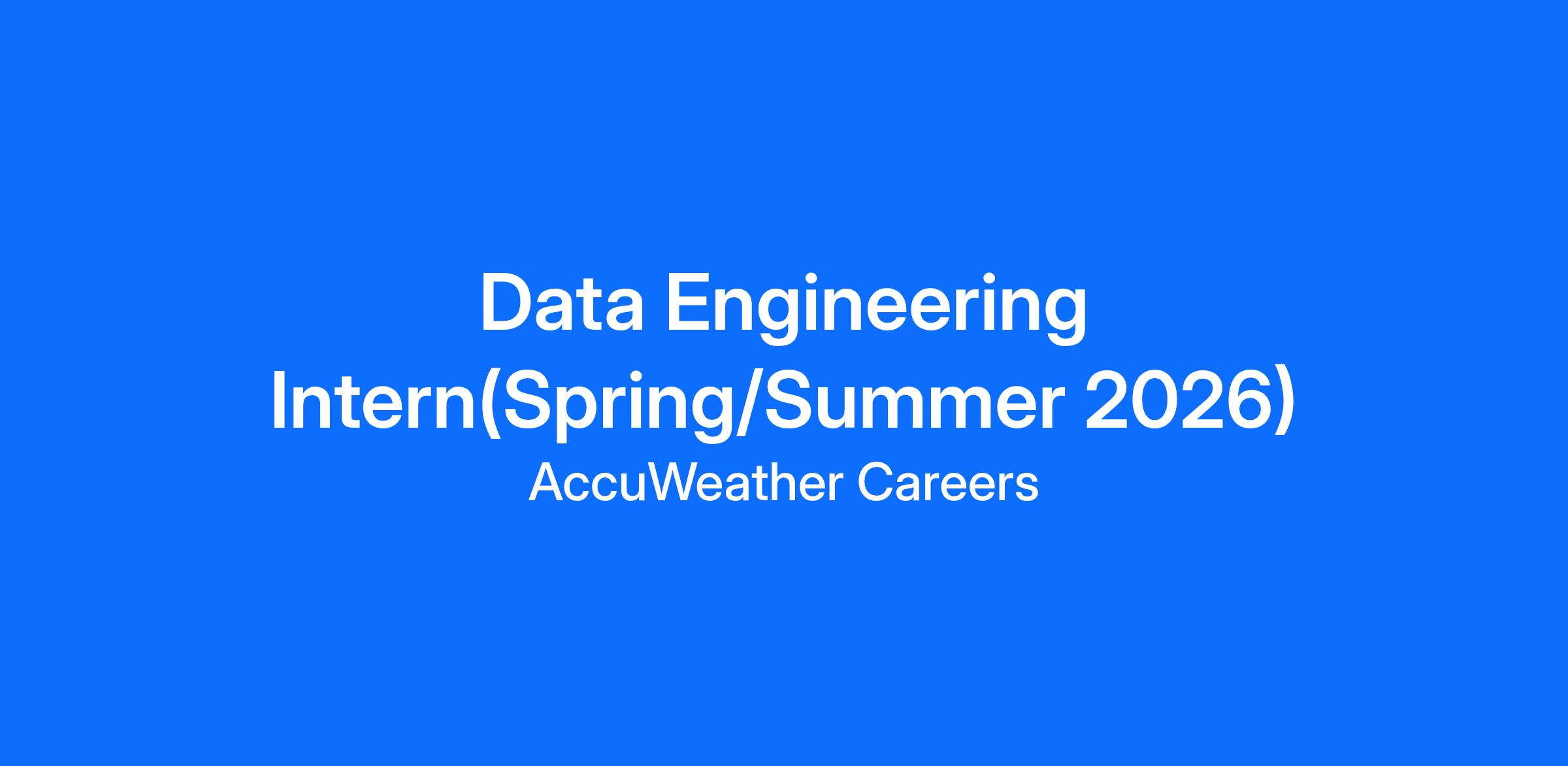 The Data Engineering Intern supports AccuWeather’s data engineering team in developing and automating systems that enhance data accessibility, reliability, and documentation. This role helps drive innovation across AccuWeather’s data infrastructure by contributing to automation initiatives, improving data discoverability, and exploring AI-driven solutions. Working under the guidance of experienced data engineers, the intern will gain hands-on experience with Databricks, Spark, Azure, and modern data engineering practices that directly support AccuWeather’s business and operational goals.