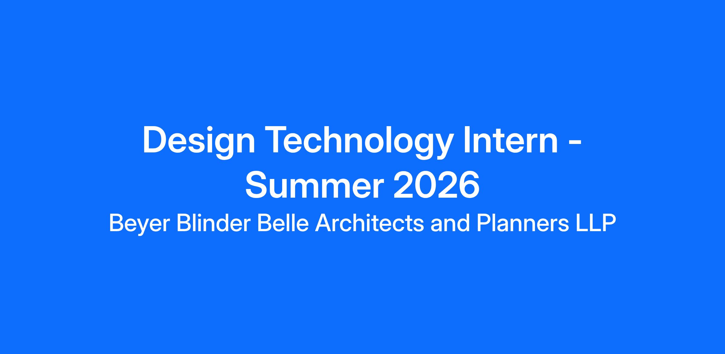 Beyer Blinder Belle is accepting Summer 2026 intern applications and seeks talented design students with an emphasis on design technology and software to join our New York City office. The intern will undertake various assignments related to the development of office standards and technical infrastructure, including, but not limited to, applying standard design processes, contributing to the development of technical solutions, assisting in creating bespoke scripting and automation deployments, conducting technical research, and developing standardized BIM assets.Â