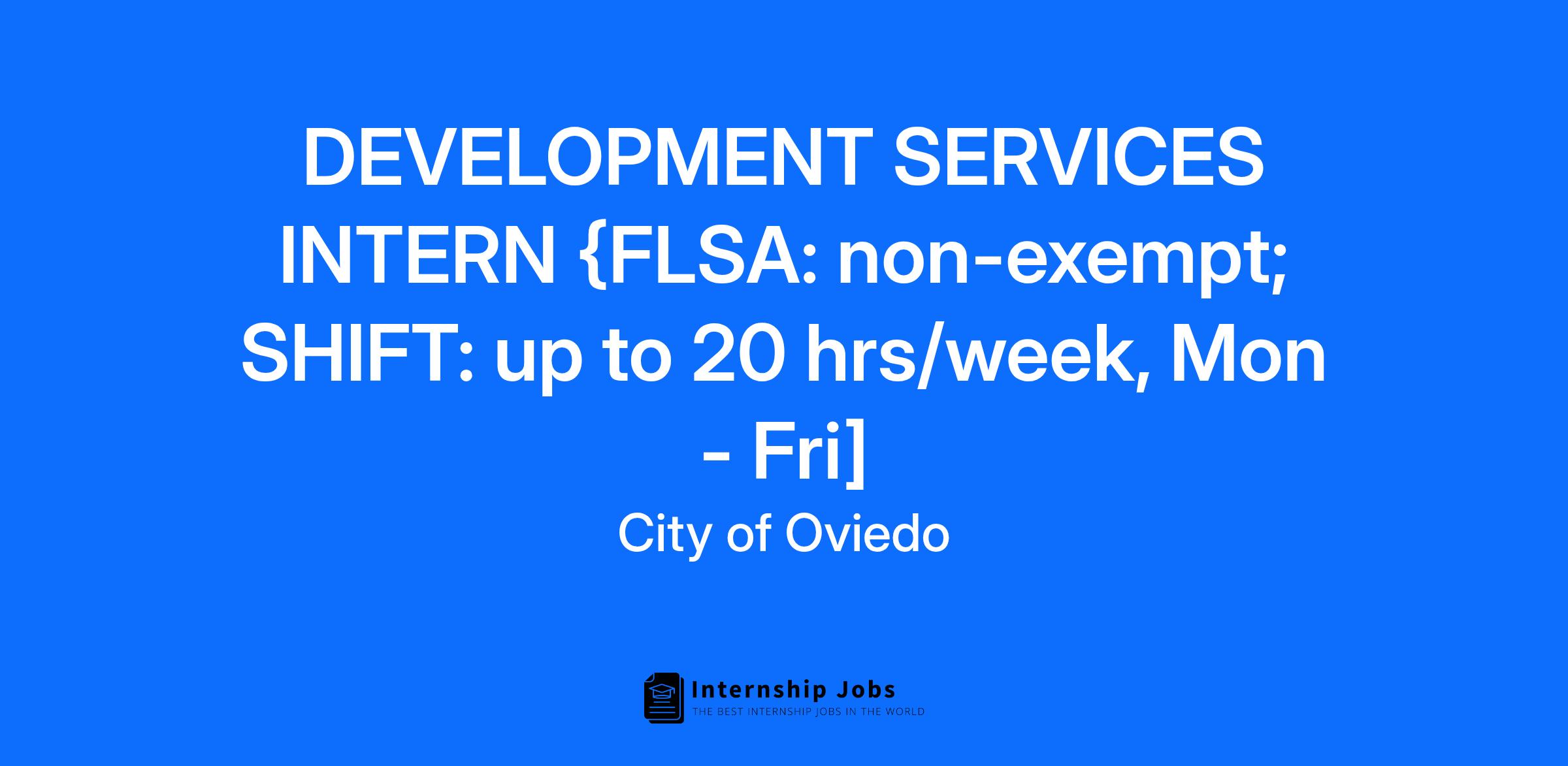 The City of Oviedo offers internships per semester, with no specific start or end date. The Development Services intern will report to the Development Services Director or their designee.Assists with the development of both current and long-range development review and/or other planning activities.
