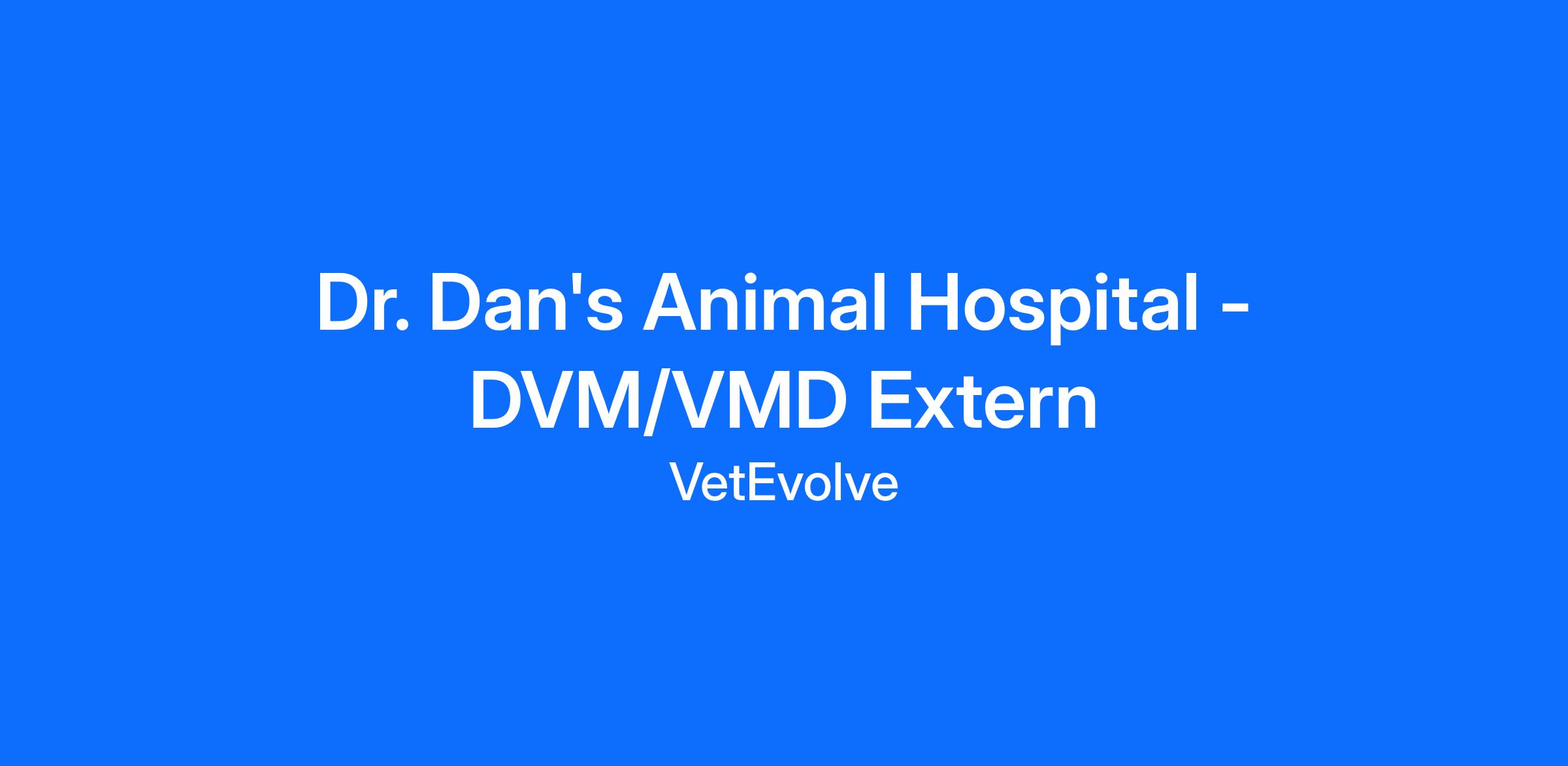 About the hospital: Dr. Dan's Animal Hospital, located in sunny Vero Beach, Florida, is looking for a DVM/VMD Student Extern! DDAH is a well-established, community-focused practice dedicated to providing high-quality, compassionate care to pets and their families. We’re seeking a veterinarian who shares our commitment to excellence and is excited to join a collaborative, supportive team in a modern, well-equipped facility. As pet owners ourselves, we understand the deep bond between pets and their families. That's why we prioritize treating every patient with dignity, kindness, and respect. Our team of qualified professionals is dedicated to creating a loving environment where both pets and their owners feel valued and cared for. If you're passionate about veterinary medicine and looking to grow your career in a practice that values compassion, excellence, and community, we would love to hear from you.
