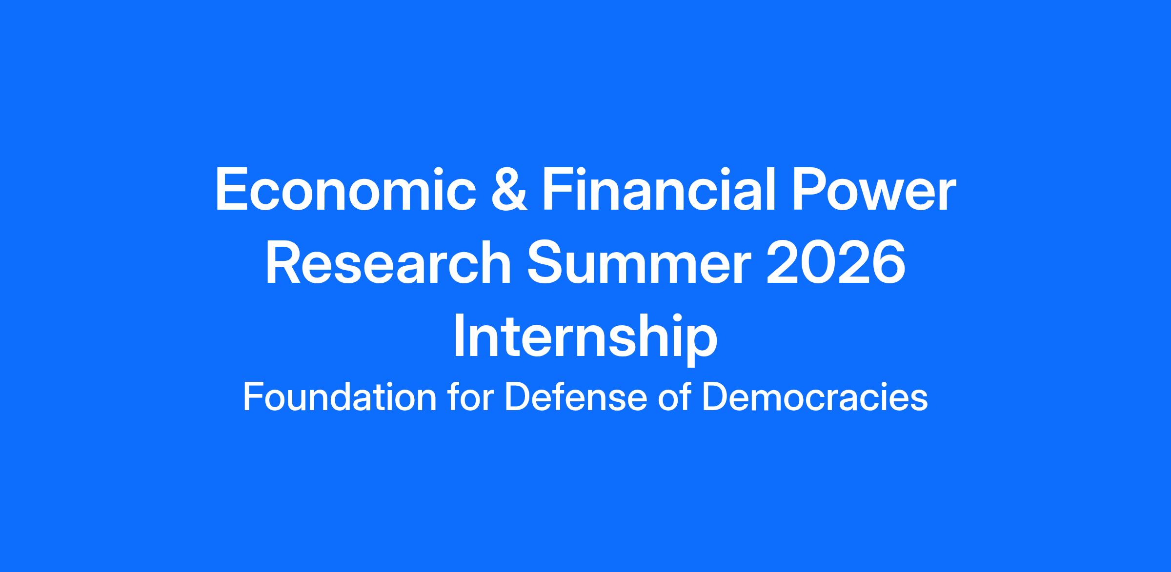 FDD's Center on Economic and Financial Power (CEFP) seeks a full-time or part-time intern. The intern will work closely with CEFP Deputy Director Josh Birenbaum and other staff to provide research support for critical projects relating to U.S. economic security. Projects may include working on issues related to sanctions and economic statecraft, illicit finance, global corruption risks, supply chain dependencies, trade enforcement, digital currencies, and positive economic power projection. CEFP is looking for candidates with research experience, strong writing skills, and an interest in the intersection of U.S. foreign, national security, and economic policy. For more background on CEFP, please visit www.fdd.org/cefp.