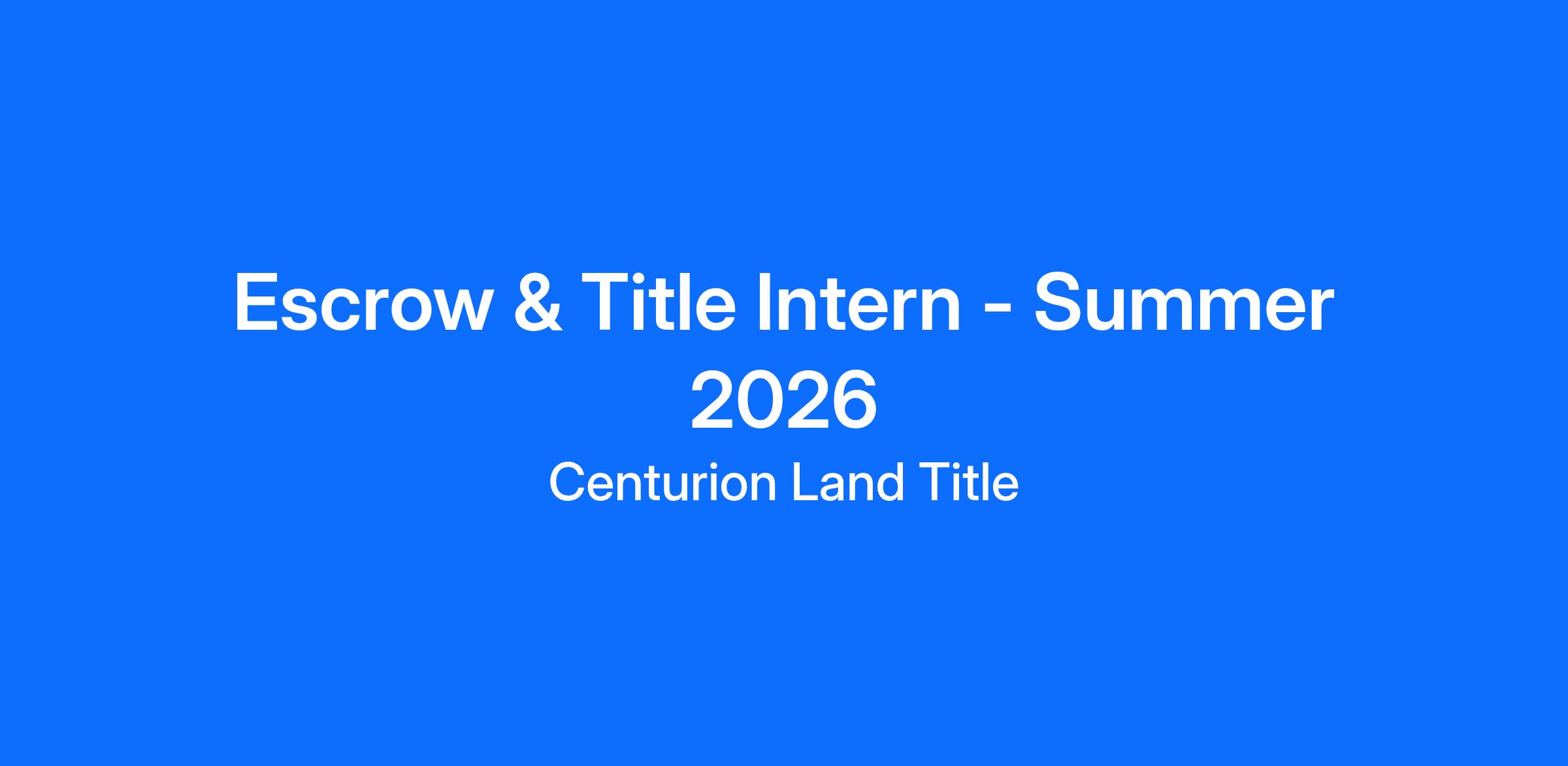 Centurion Land Title is seeking a motivated and detail-oriented Escrow & Title Intern to join our team for Summer 2026. This internship provides hands-on exposure to the real estate closing process and the day-to-day operations of a title company. This internship will run from Wednesday, May 20th to Friday, August 7th, 2026.