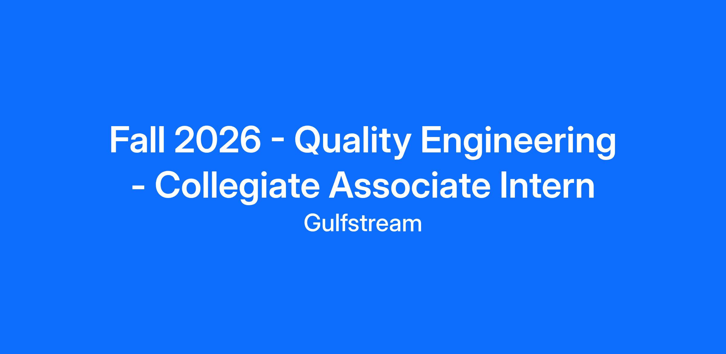 Fall 2026 - Quality Engineering - Collegiate Associate Intern in GAC Savannah