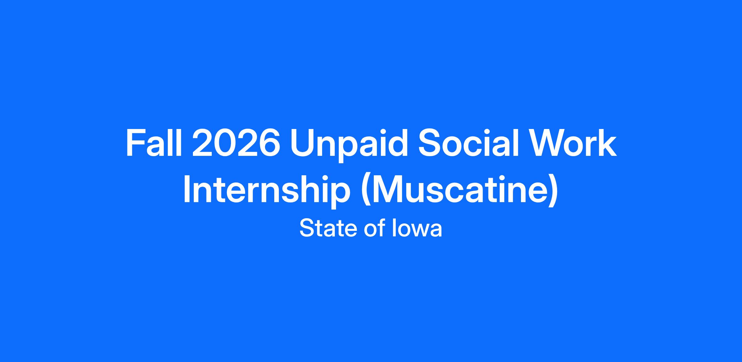 This internship will be for Fall 2026 and will be based in the Muscatine office and will work in that and surrounding counties. This posting will be open for until filled.