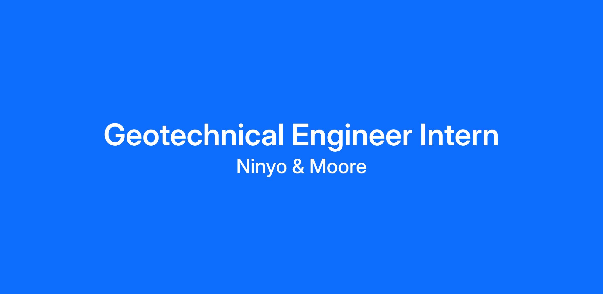 Job Description: Ninyo & Moore, a SOCOTEC Company, has an opening for a summer 2026 Geotechnical Engineering Intern in San Jose, California. The successful candidate will work alongside geotechnical staff engineers in the performance of geotechnical field evaluations and construction observation. Duties will include assisting with geotechnical subsurface evaluations and geotechnical calculations, and performance of construction phase observation and reporting. Additional duties may include assisting in our in house laboratory and assisting Principal engineers with project related tasks.