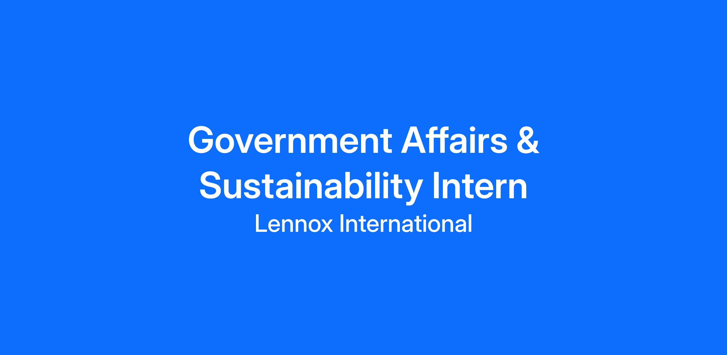 As a Government Affairs & Sustainability Intern at Lennox, you will be a part of a team of innovative and knowledgeable industry professionals. You can expect to participate in impactful, developmental projects designed for your specific area of focus. This is approximately a 10 to 12-week program that will provide you with real work experiences to grow your career and provide exposure to business leaders throughout the company.