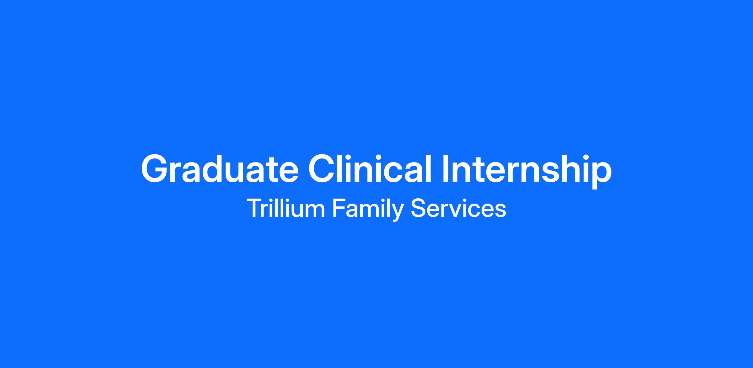 Trillium Family Services is seeking graduate-level clinical interns for placement beginning June 2026. This internship provides hands-on experience working with children, adolescents, and families experiencing trauma and mental illness under close clinical supervision.
