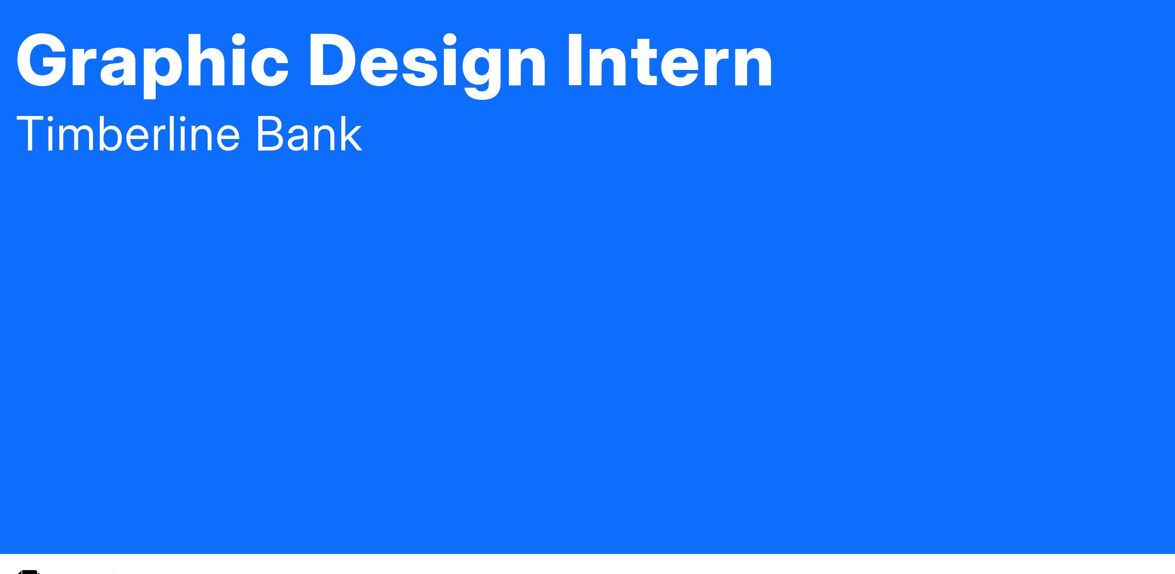 The Graphic Design Intern is a non-exempt, non-officer, part-time position that is responsible for developing and implementing graphic design work as needed to support the existing Timberline Bank Marketing and Communications Coordinator. This person must be available to work Monday thru Friday for an approximate 10 hours per week with the flexibility to work longer hours.