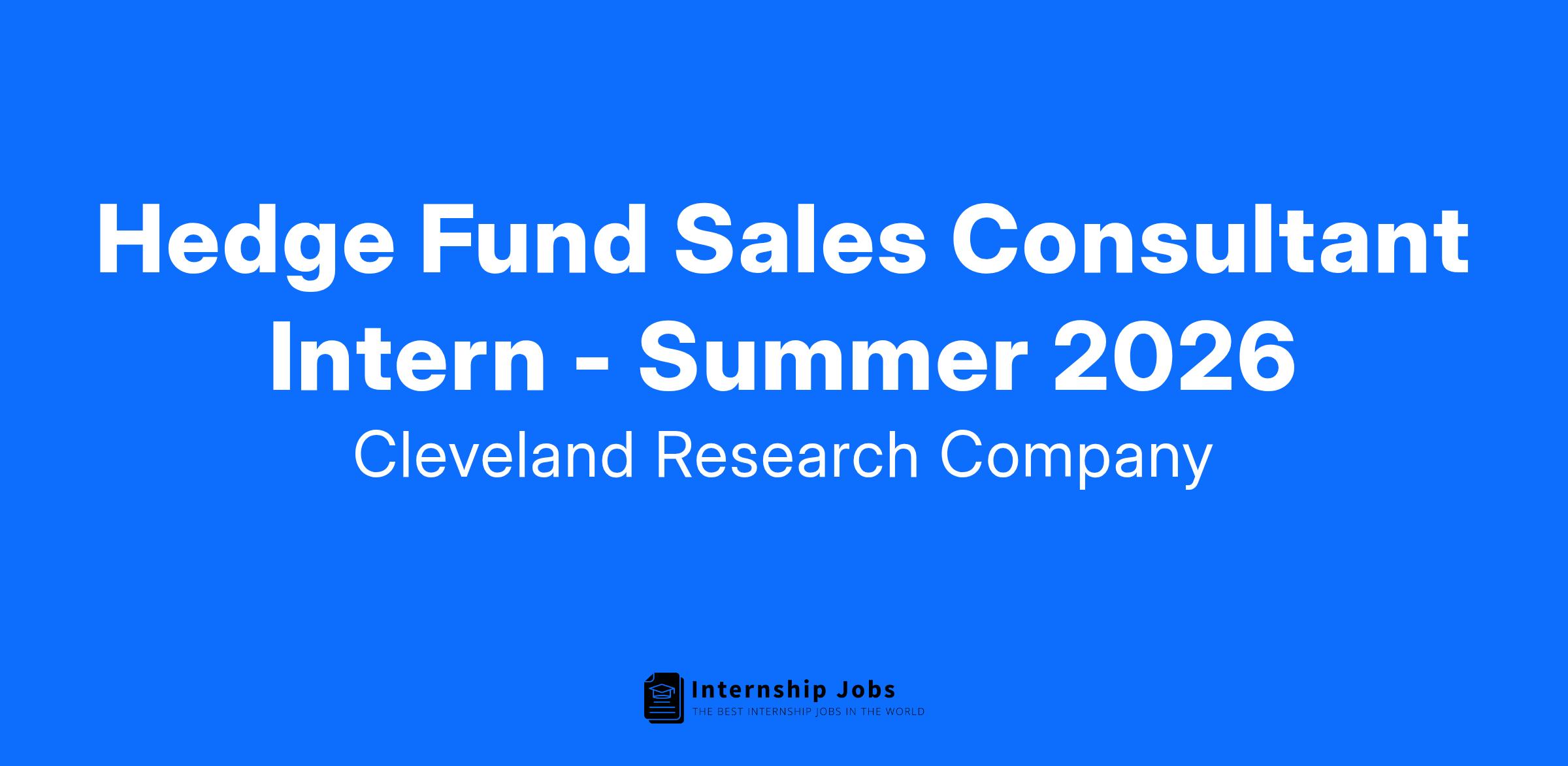 Hedge Fund Sales Consultant Intern- Summer 2026