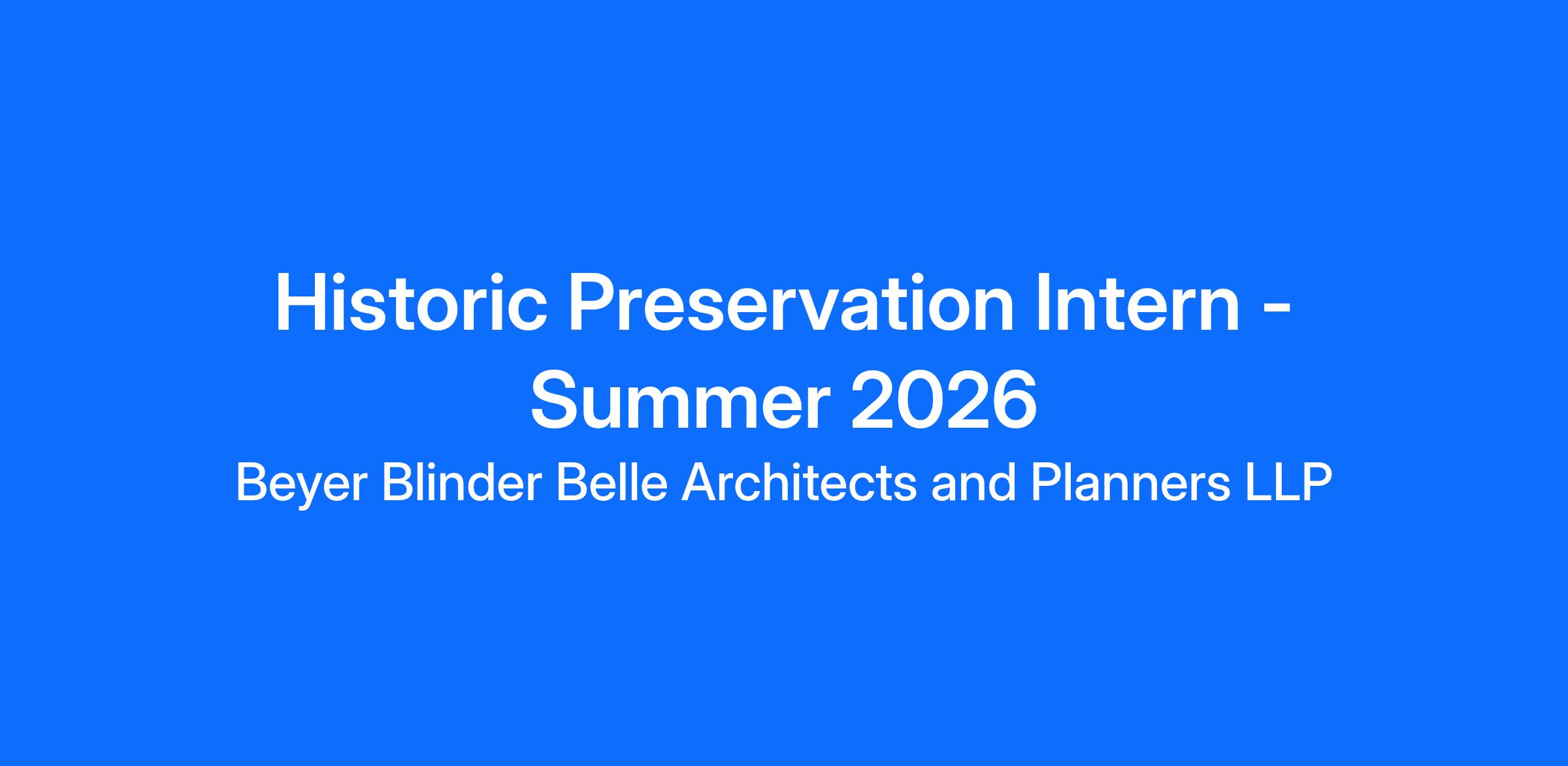 Beyer Blinder Belle is currently accepting applications for our 2026 summer internship program and seeks talented architecture and preservation students to join our Historic Preservation studio in New York City. Interns will receive guidance and support from experienced professionals committed to providing mentorship throughout the internship.