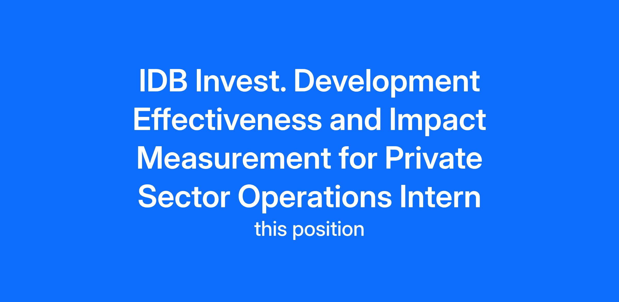 The IDB Group is looking for an active graduate student to be hired as an intern under the Consultant modality.Â