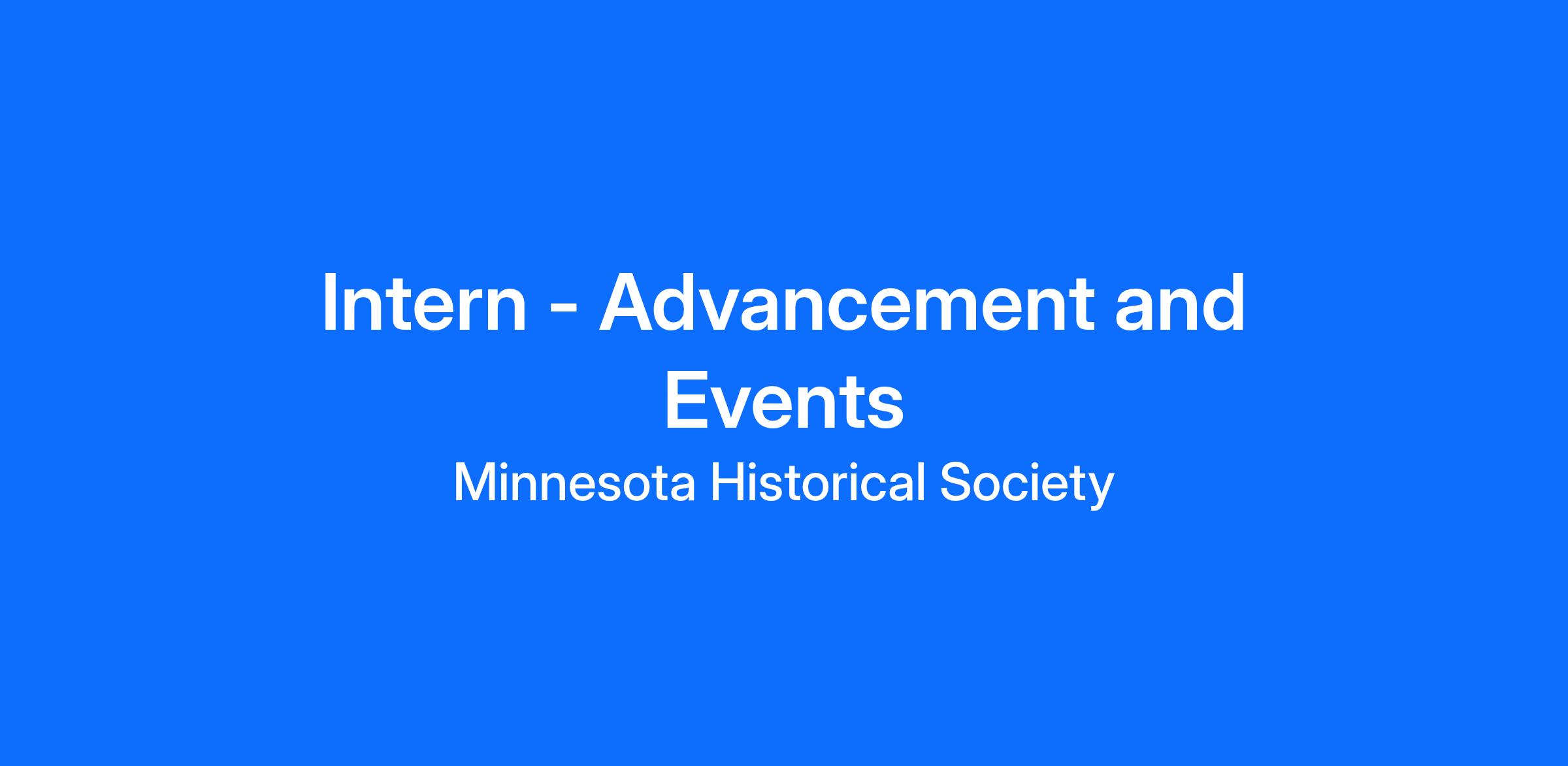 DESCRIPTION: The Advancement and Events Intern works closely with Membership Director, Event Coordinator, Membership Assistant, Development Officers, and the Operations and Research Manager. The Advancement Department exists to identify, cultivate, solicit and steward individuals, companies, and foundations interested in supporting the Minnesota Historical Society through membership or donations. As an intern, you will be assisting the core teams of the Advancement and Membership Department—Membership and Events, Major Gifts, Research and Prospect Management, Corporation Sponsorships, Foundations, Legacy Giving, Gifts Processing. The internship will provide substantial support in nonprofit membership and event work, and advancement, while gaining valuable experience working in one of the nation's leading historical societies.