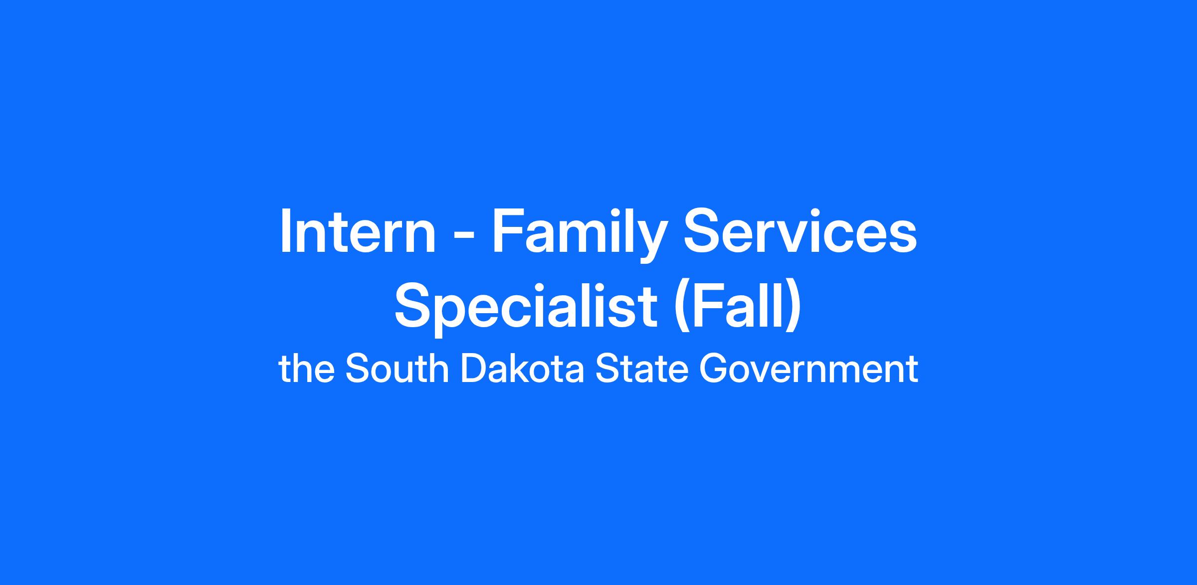 Session: Fall (September - December) Position Title:Intern - Family Services Specialist Intern Hiring Manager: Reata McDonald Agency:Department of Social Services Location: Vermillion Minimum Salary: $20.53 per hour