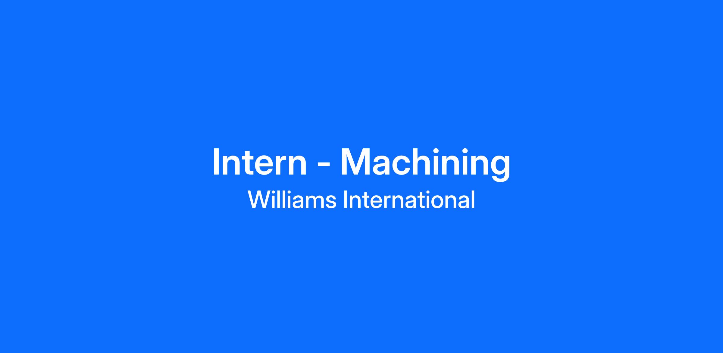 Williams International has an exciting opportunity for a Machining Intern to join our team.