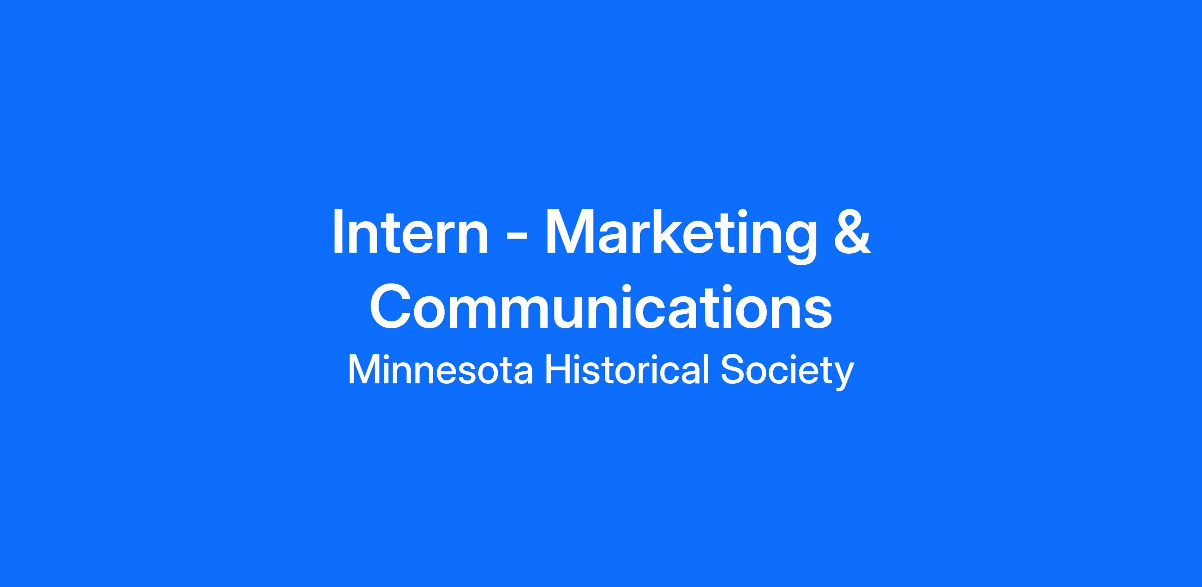 DESCRIPTION: The Marketing & Communications intern will support the Integrated Marketing Department with promoting MNHS events, sites, and exhibits through assisting with writing and researching media business, tracking media coverage, and coordinating with MNHS departments on promotional materials such as flyers, brochures, and website updates.
