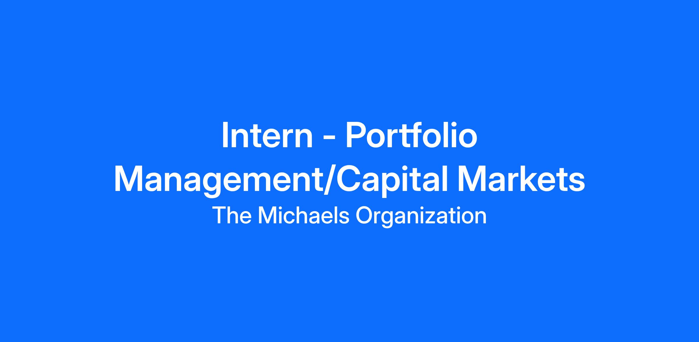 Michaels is looking for a Portfolio Management/Capital Markets Intern who is ready to apply their course-work to a real-world experience! The intern will assist the Capital Markets team with a wide-range of responsibilities during the program. The internship will appeal to proactive and self-motivated students with a genuine desire to learn about the real estate business and industry. During the program, you will work on real projects and have real responsibilities. Michaels aims to help candidates build strengths, gain skills that can be transferred to any workplace, and stand out from the crowd!