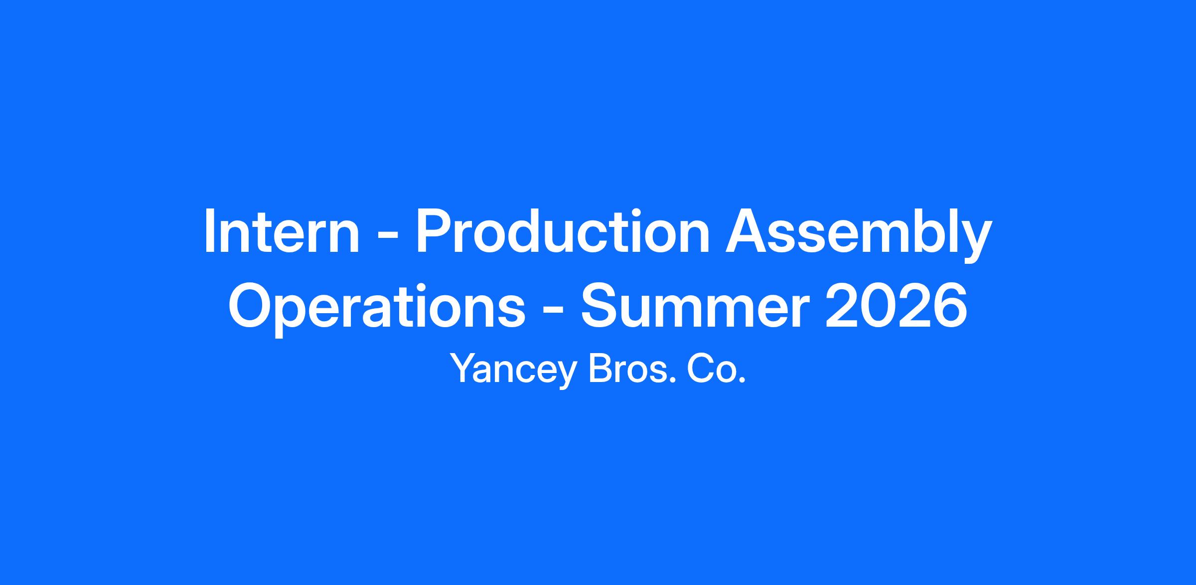 Work with the Assembly Team at Yancey Engineered Solutions to develop trade skills and seek efficiency gains within production operations.