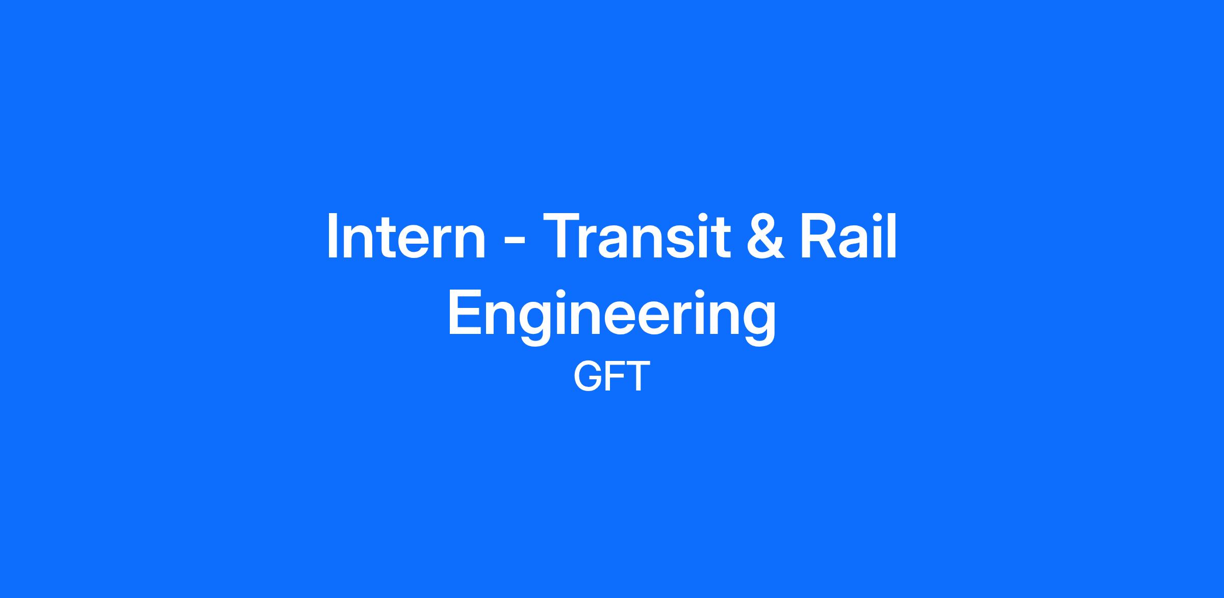 Join GFT, an award-winning architecture, engineering, and construction firm, as a Transit & Rail Engineering Intern and gain real-world experience in a dynamic environment. Our inclusive environment will fuel your innovation and imagination while fostering a sense of belonging.