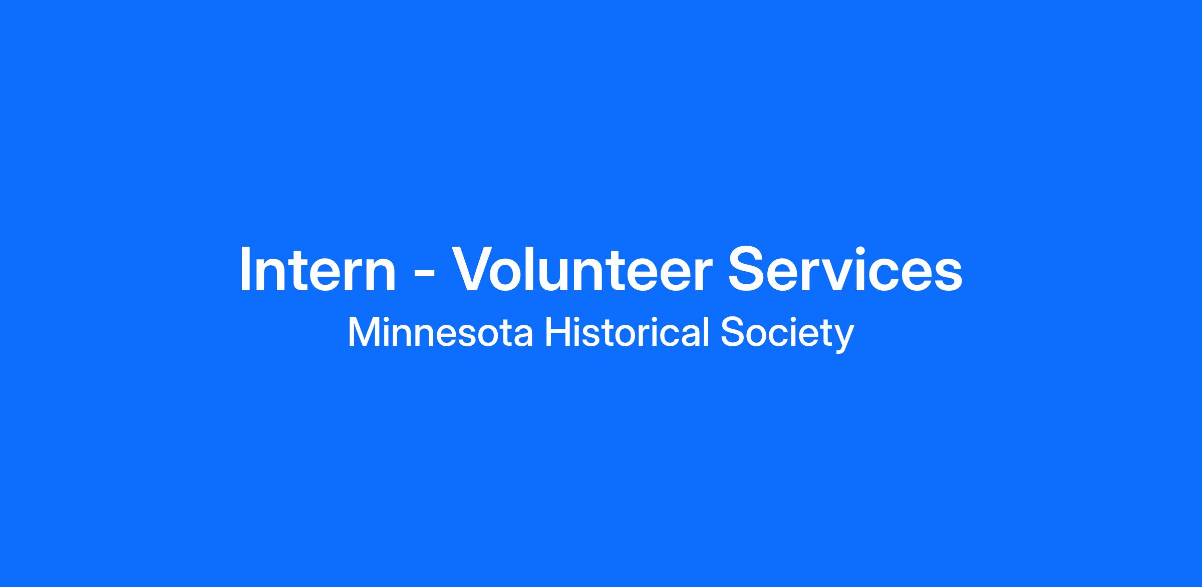 DESCRIPTION: The Volunteer Services Intern will support coordination of Event Support Volunteers who assist staff and Site Managers throughout the Twin Cities with a wide variety of events for visitors, members, donors, and volunteers. This role will also support the recruitment, training, and placement of summer volunteers at MNHS sites statewide that host seasonal volunteer programs.