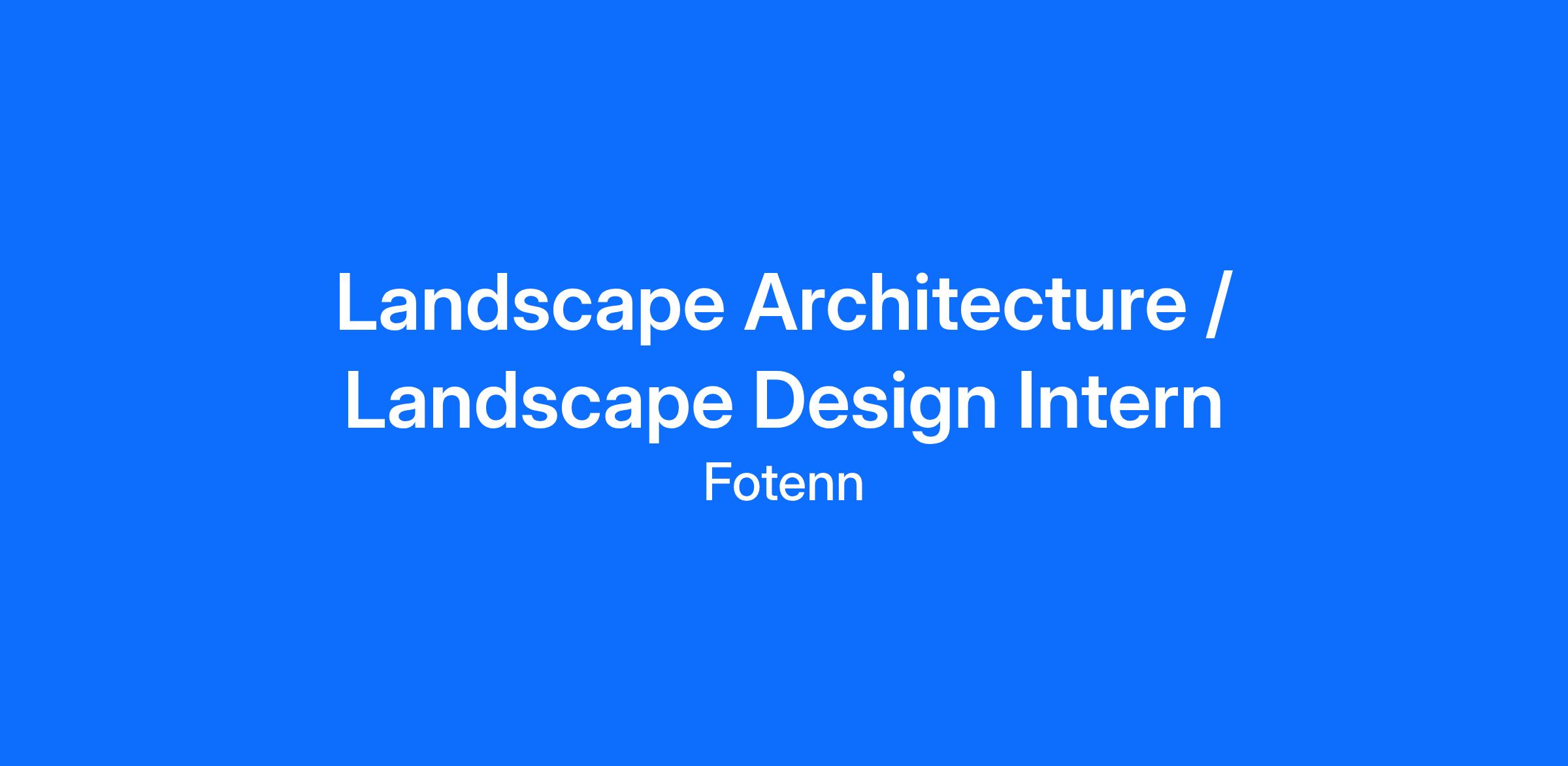 Landscape Architecture / Landscape Design Intern