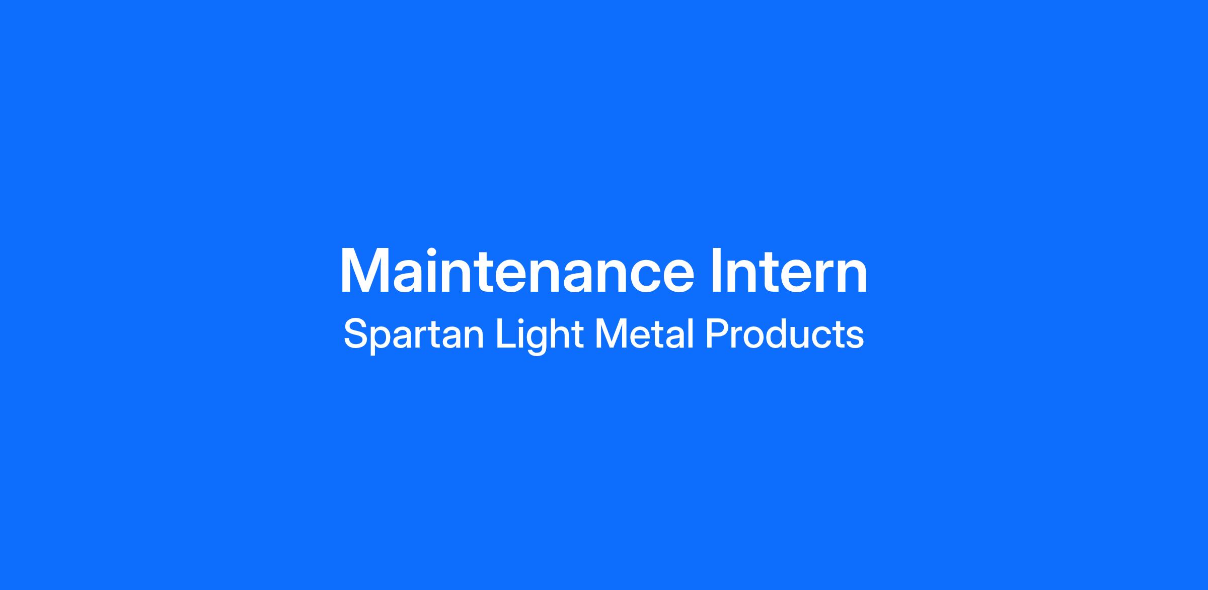 Our Maintenance Internship Program offers students an exciting opportunity to explore the many career opportunities within Spartan. Students will have the opportunity to work side-by-side with our experienced staff in a team environment on real-world projects. In addition, they will have an opportunity to learn about our Lean and Continuous Improvement initiatives and how we work together to achieve “success.”