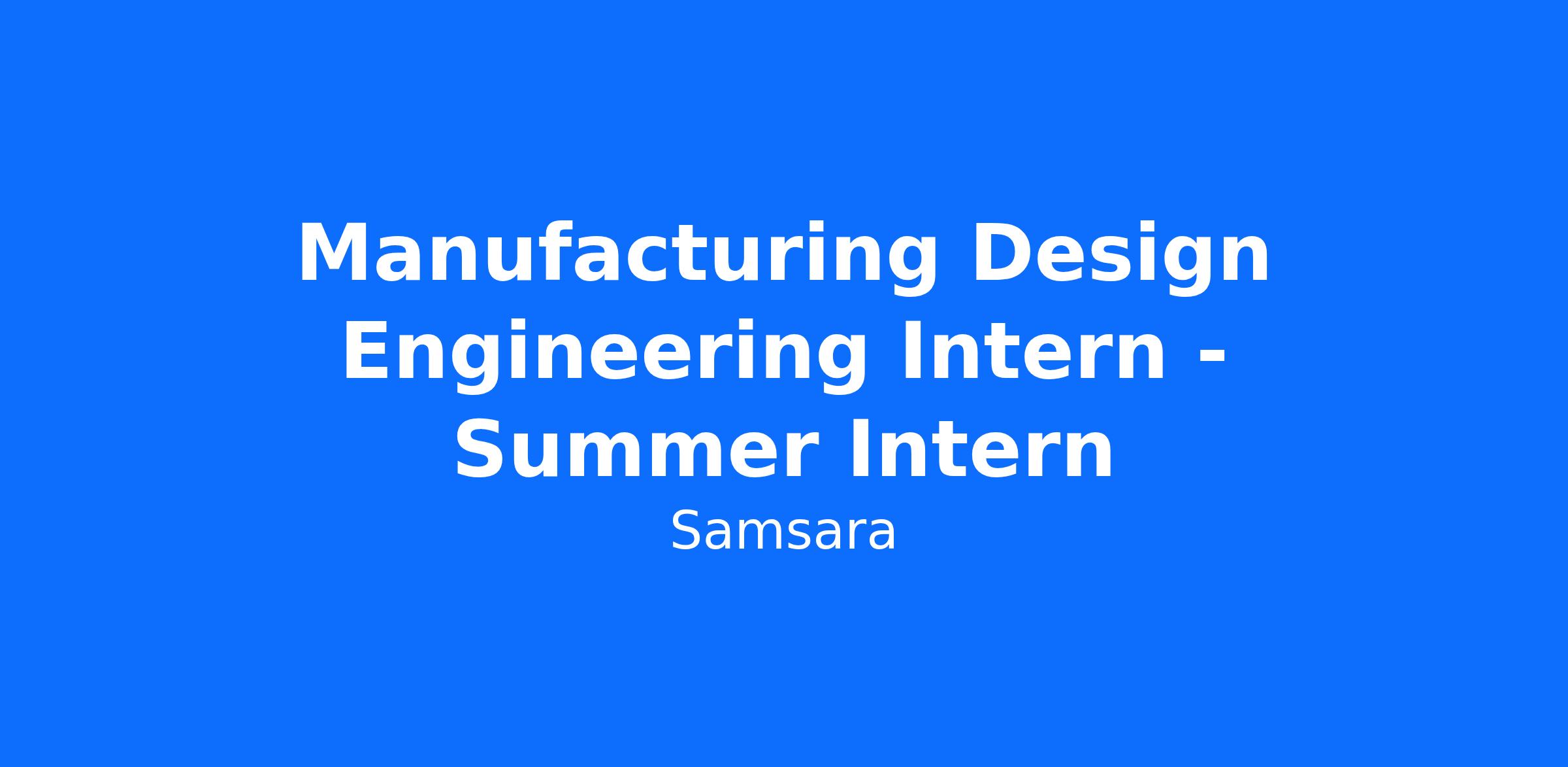 As a Manufacturing Design Engineering Intern at Samsara, you will contribute to the design and development of innovative manufacturing processes. Gain hands-on experience in a fast-paced environment and collaborate with experienced engineers on real-world projects.