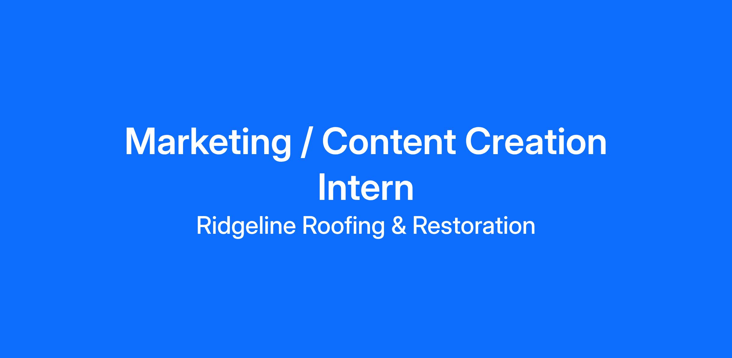 Ridgeline Roofing & Restoration is a growing roofing and restoration company committed to delivering high-quality craftsmanship and exceptional customer service. We are looking for a creative and motivated Marketing/Content Creation Intern to help showcase our completed projects and highlight the quality of our work through engaging video and social media content.