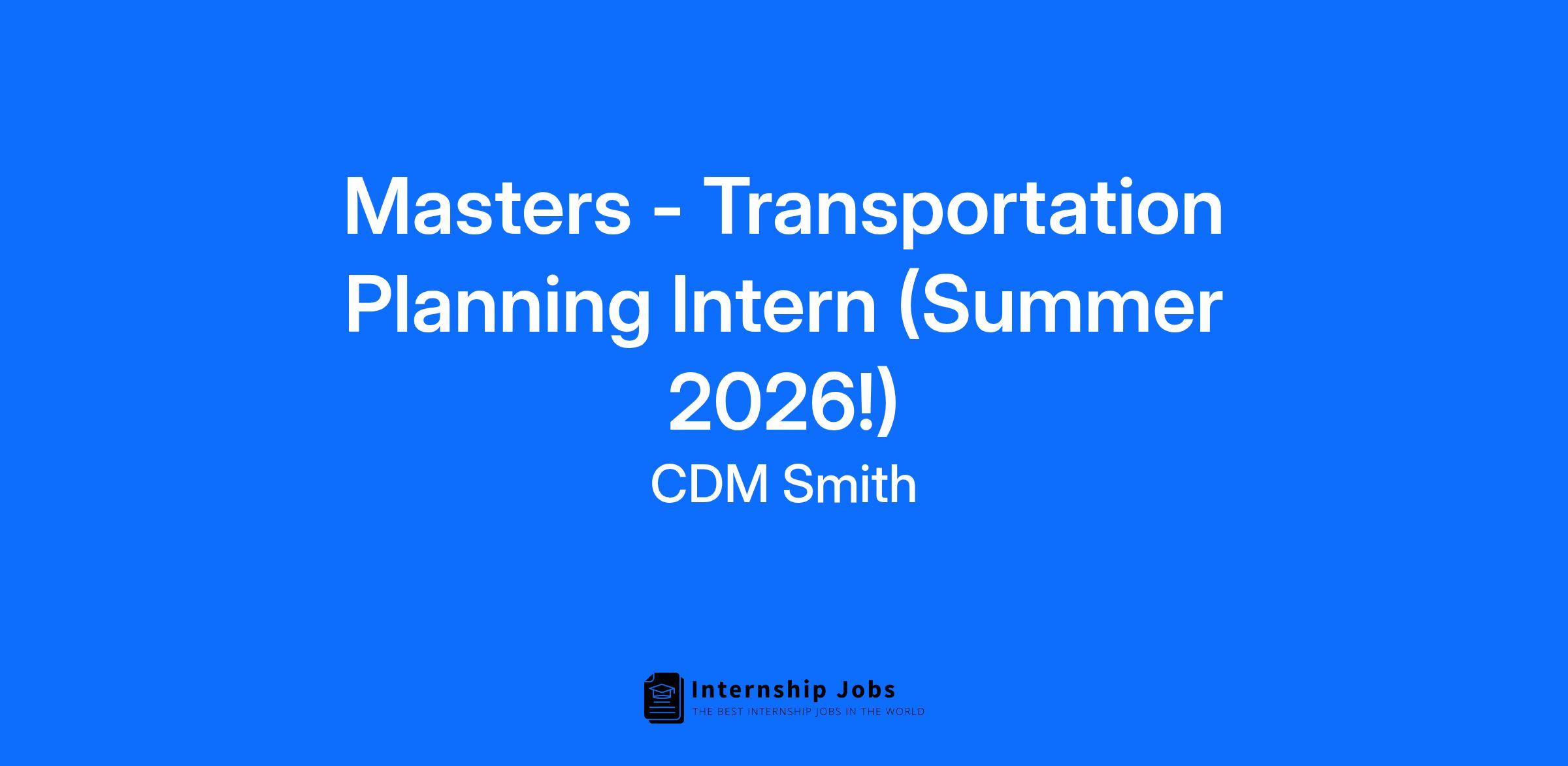 CDM Smith is looking for a Masters Planning Intern to join our team! You'll be working with a dynamic team of industry leading engineers on a diverse portfolio of public, federal, and industrial projects. During this Internship you will work with our Transportation staff to assist with data analysis and potential coding for travel demand modeling projects. You will work with mid-level and senior modelers to check travel demand model output, conduct comparison/validation analysist with existing traffic counts, and develop data to input into travel demand models. You'll assist with basic traffic data collection, elementary sections of reporting, use of GIS systems, research and other ad-hoc assignments as needed.