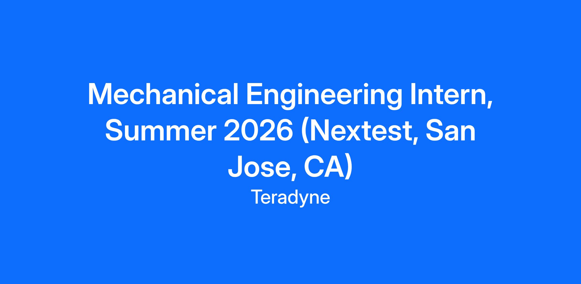 The Nextest Division of Teradyne, located in San Jose CA is currently looking for a Mechanical Engineering intern to join the team.