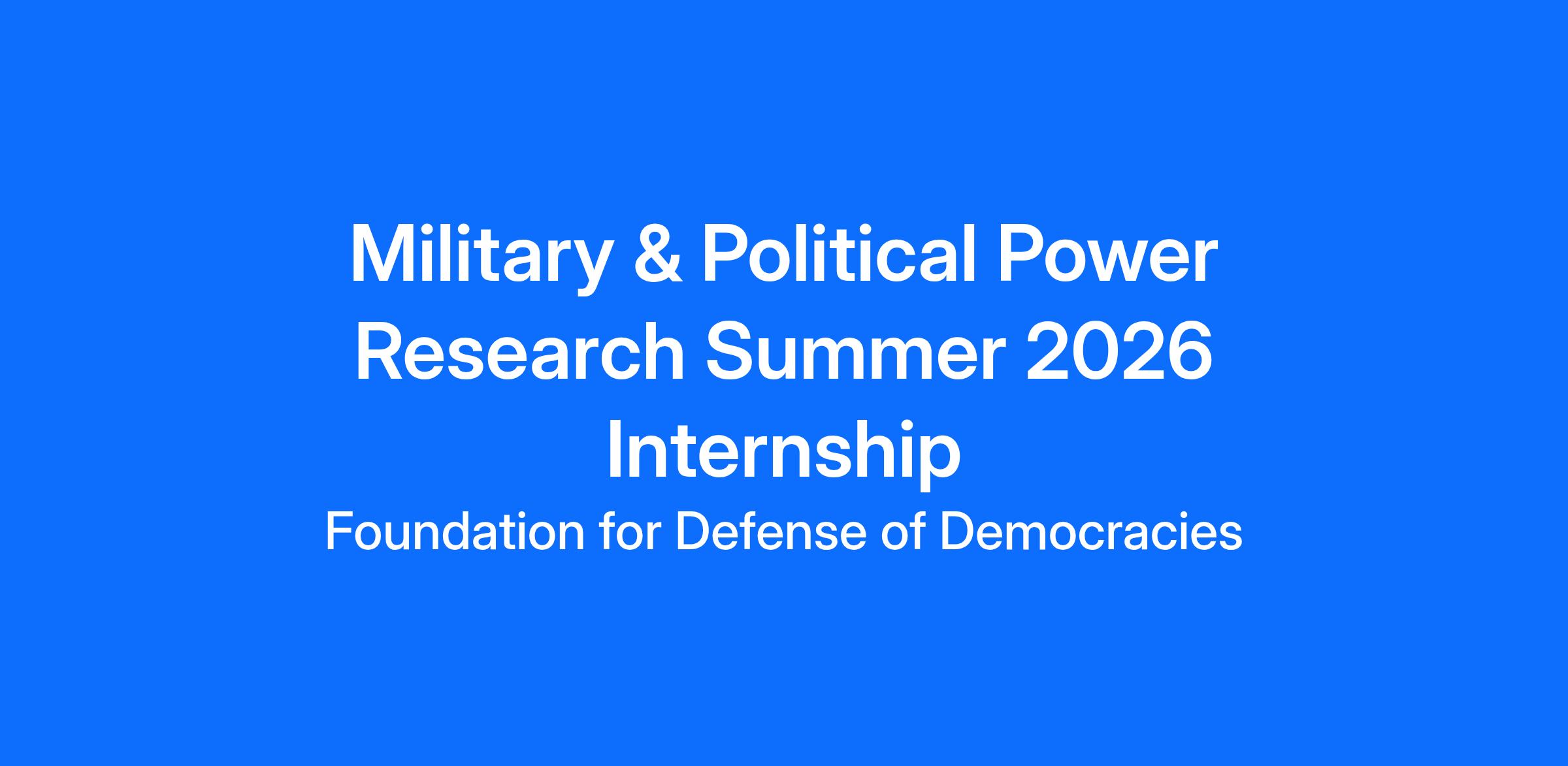 The Center on Military and Political Power is looking for part-time or full-time interns. CMPP is a center at FDD that promotes understanding of the defense strategies, policies, and capabilities necessary to deter and defeat threats to the freedom, security, and prosperity of Americans and our allies by providing rigorous, timely, and relevant research and analysis. Interns will work closely with CMPP Senior Director Bradley Bowman on a variety of projects related to U.S. defense strategy and policy. Qualified candidates will have a demonstrated record of excellence, including strong research and writing skills. Additional information on CMPP may be found here.