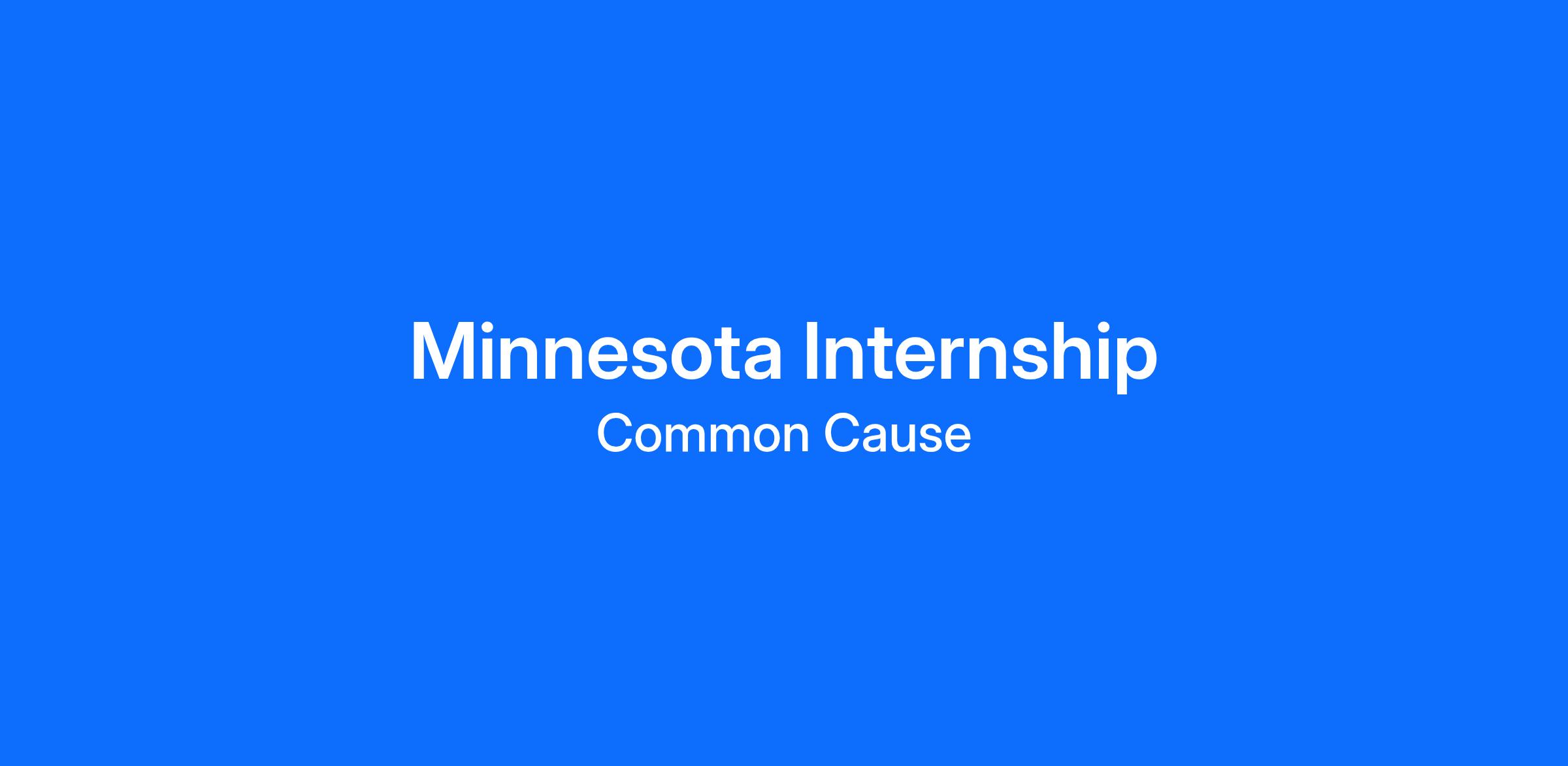 Common Cause is seeking an intern to work with our team in Minnesota relating to voting and elections, redistricting, and democracy reform. Interns will assist with advocacy campaigns, grassroots engagement, research, policy development, communications, and/or member outreach and events. This is an exciting opportunity for someone who has a commitment to a fair and transparent democracy, and who is interested in learning more about government affairs and the legislative process.