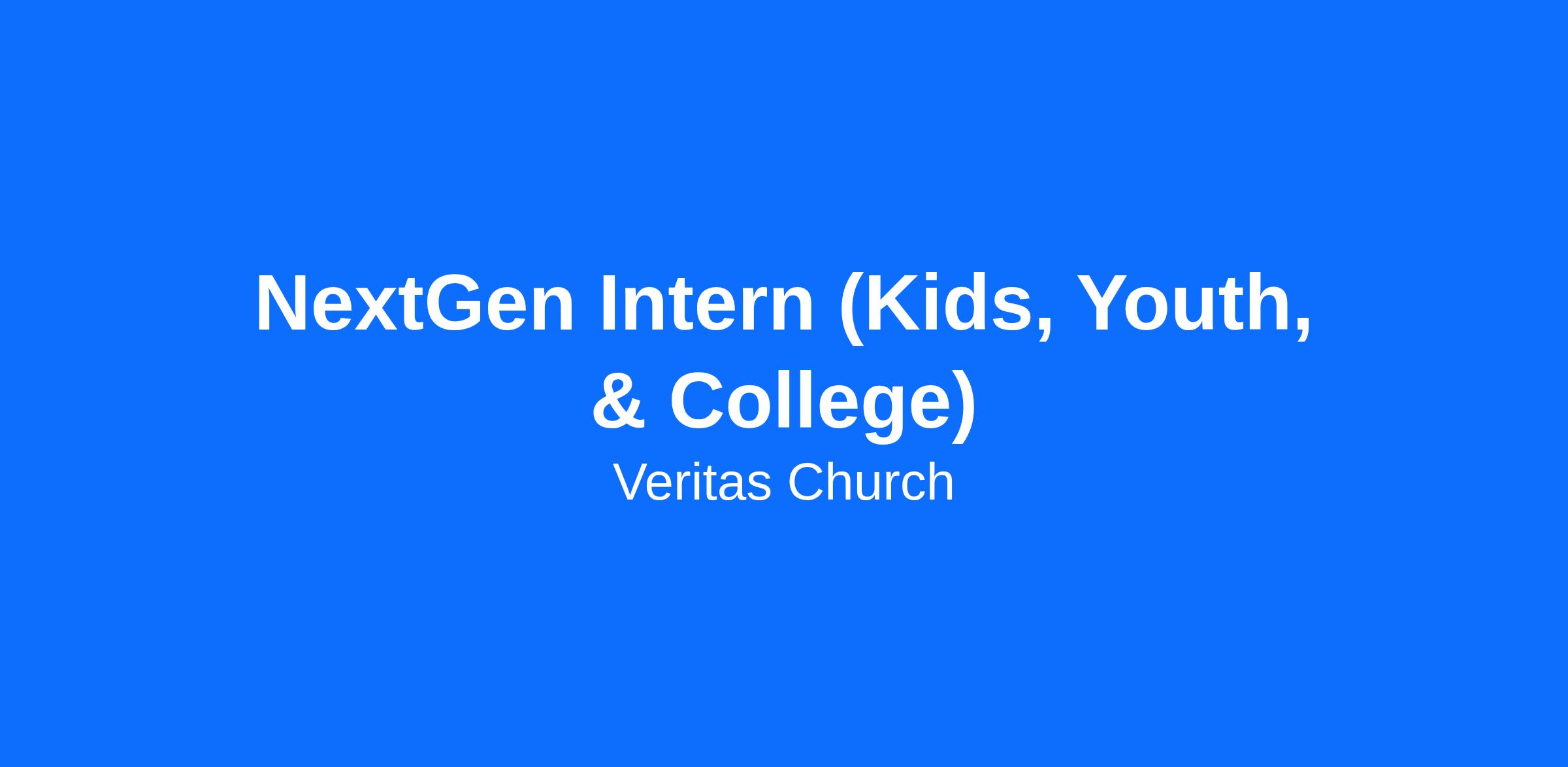 This internship provides hands-on ministry experience across the full Next Gen spectrum—birth through college—while giving interns the chance to grow as disciples, develop leadership skills, and participate in the staff culture of Veritas Church.