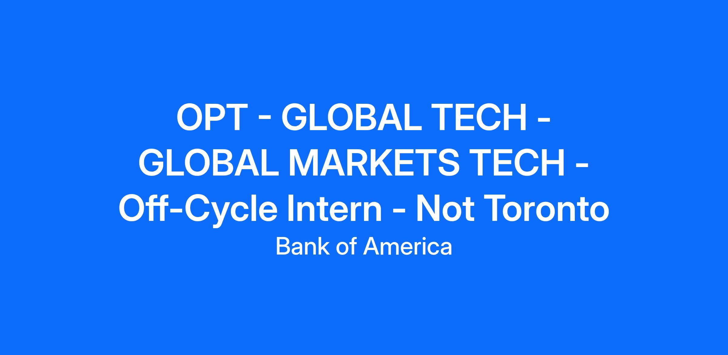 OPT - GLOBAL TECH - GLOBAL MARKETS TECH - Off-Cycle Intern - Not Toronto
