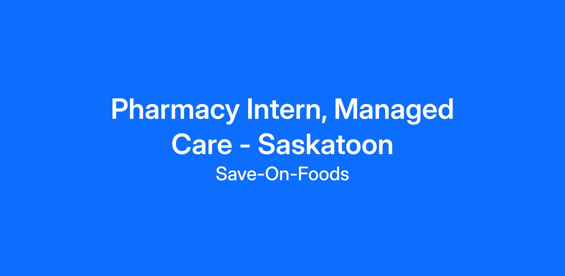 We are hiring for a Pharmacy Intern in their 2nd or 3rd year to support our Managed Care division in Saskatoon, SK.