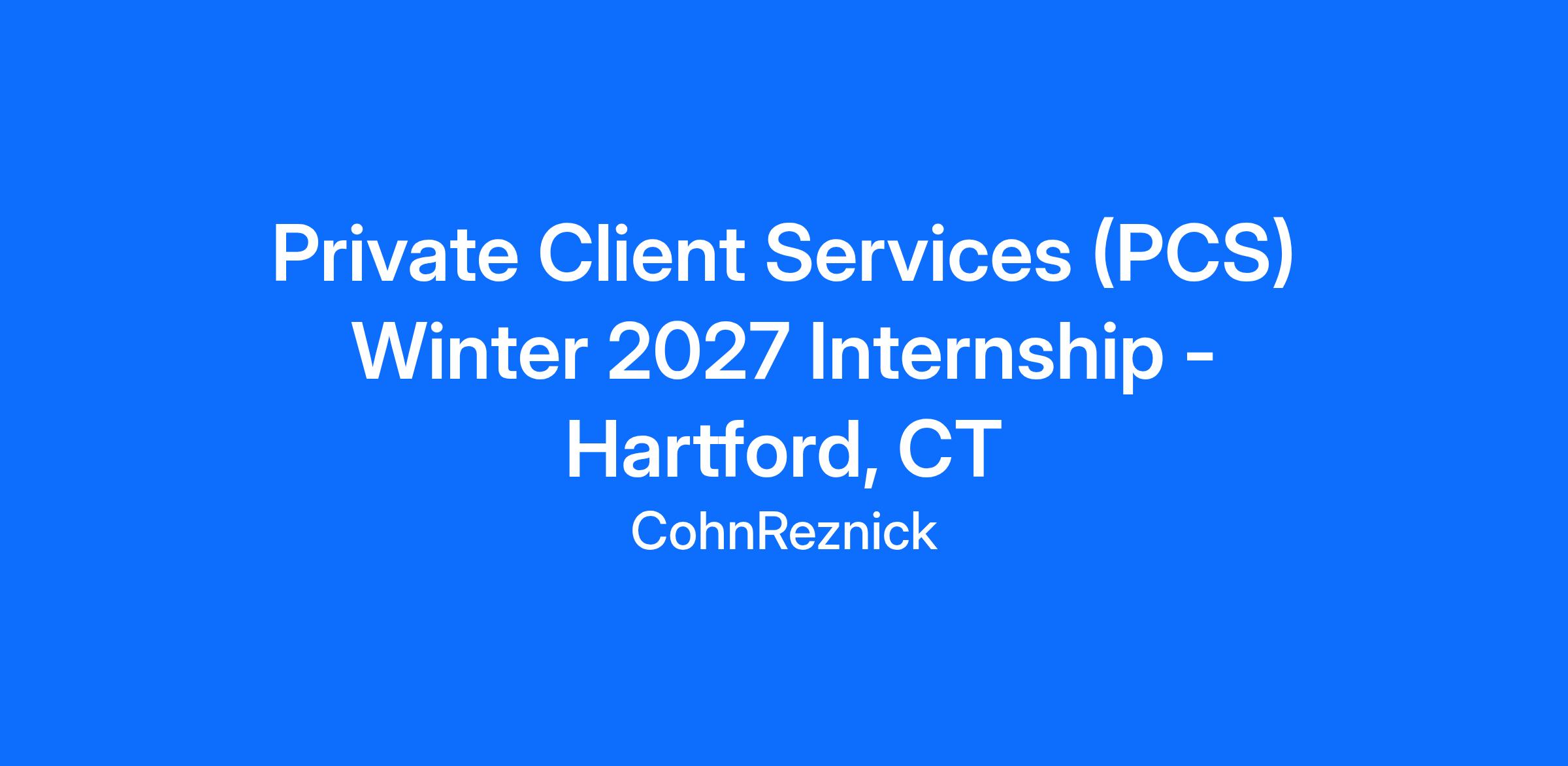 Private Client Services (PCS) Winter 2027 Internship – Hartford, CT