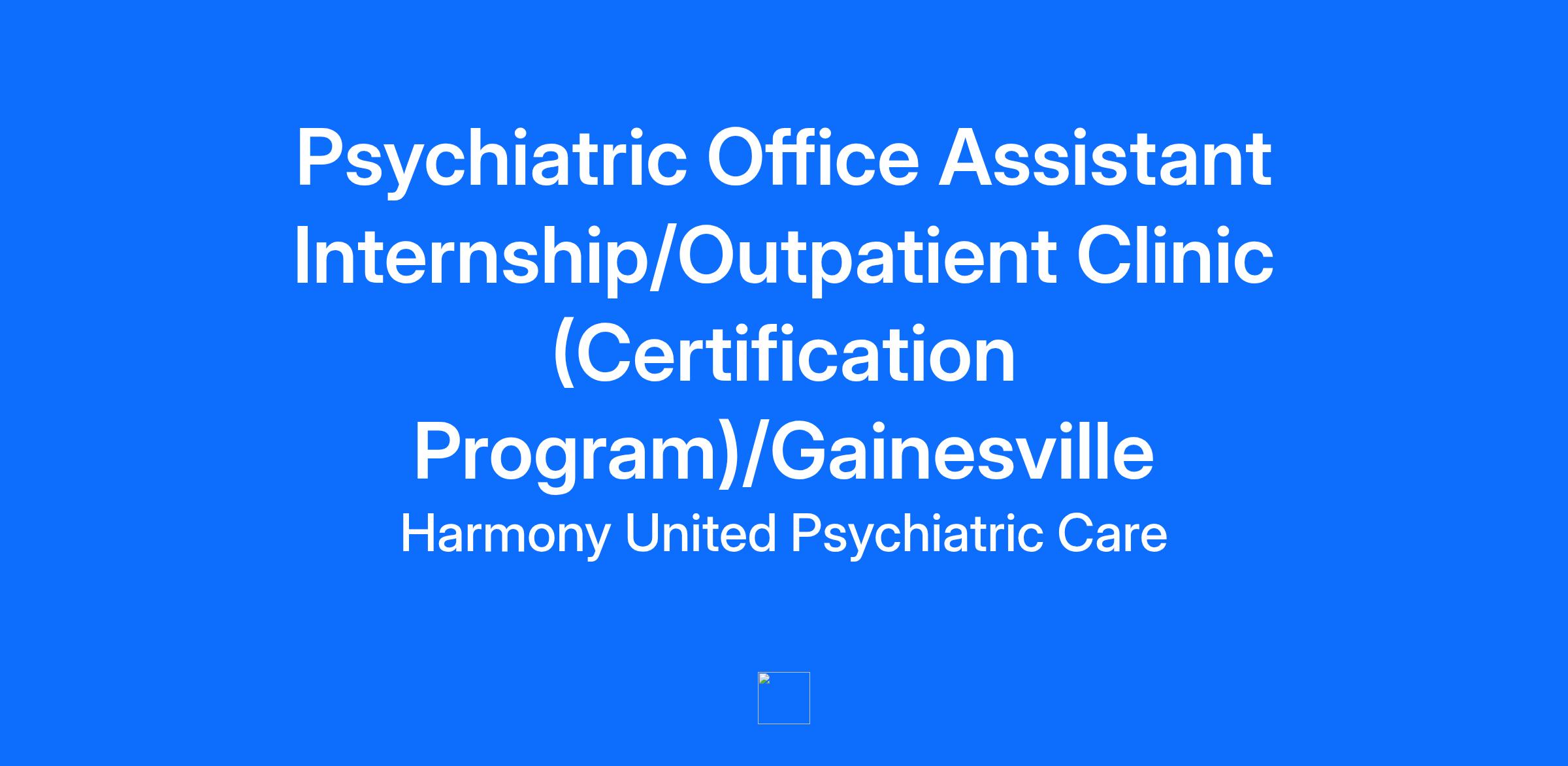 Company:Harmony United Psychiatric Care Job Title: Psychiatric Office Assistant Internship/Outpatient Clinic (Certification Program) Program Duration: 3 to 6 months (600 hours total) Schedule: Flexible, minimum 20 hrs/week with 10 hrs/day (Full office day) Location: Gainesville